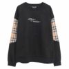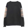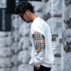 袖に大胆に切り替えたチェックと胸の刺繍が印象的なトレーナーとなっています。