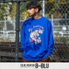 それぞれフロントとバックにグラフィックプリントを施したインパクト抜群のトレーナー。