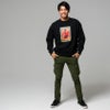 バックに大胆に施されたアートプリントが特徴的なスウェットプルオーバー。