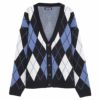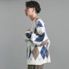 レトロな雰囲気のアーガイル柄が目を引くカーディガン。