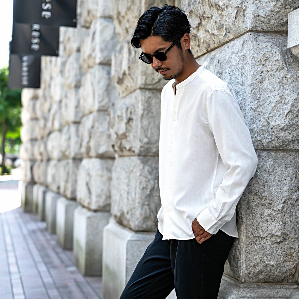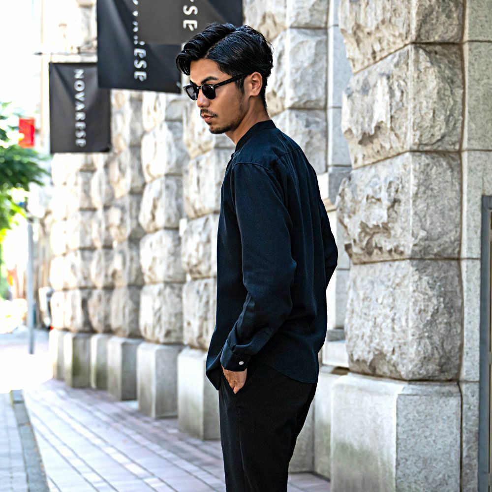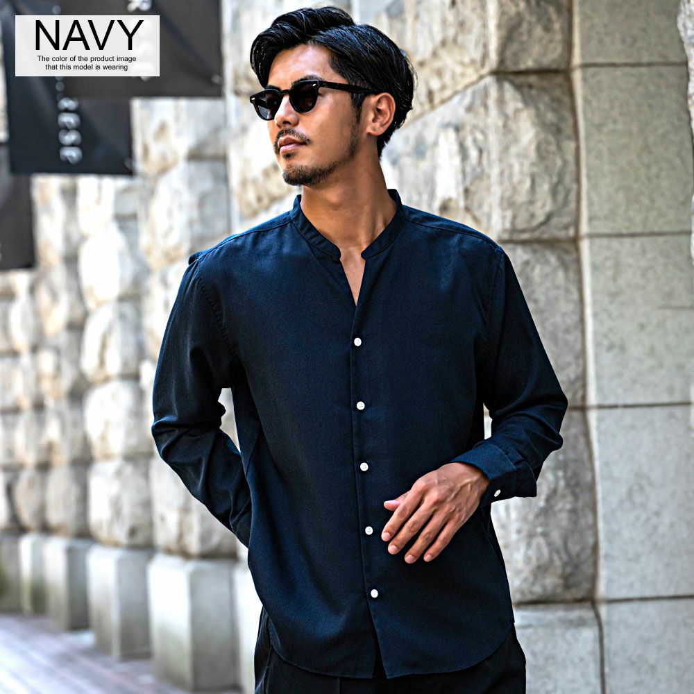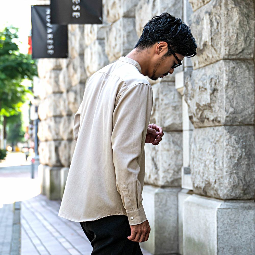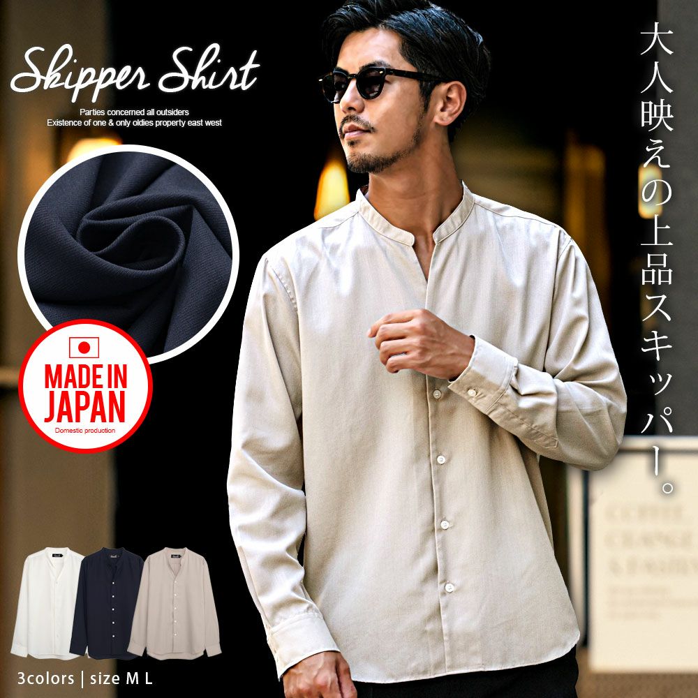 CavariA【キャバリア】日本製スキッパーバンドカラールーズ長袖シャツ/全3色