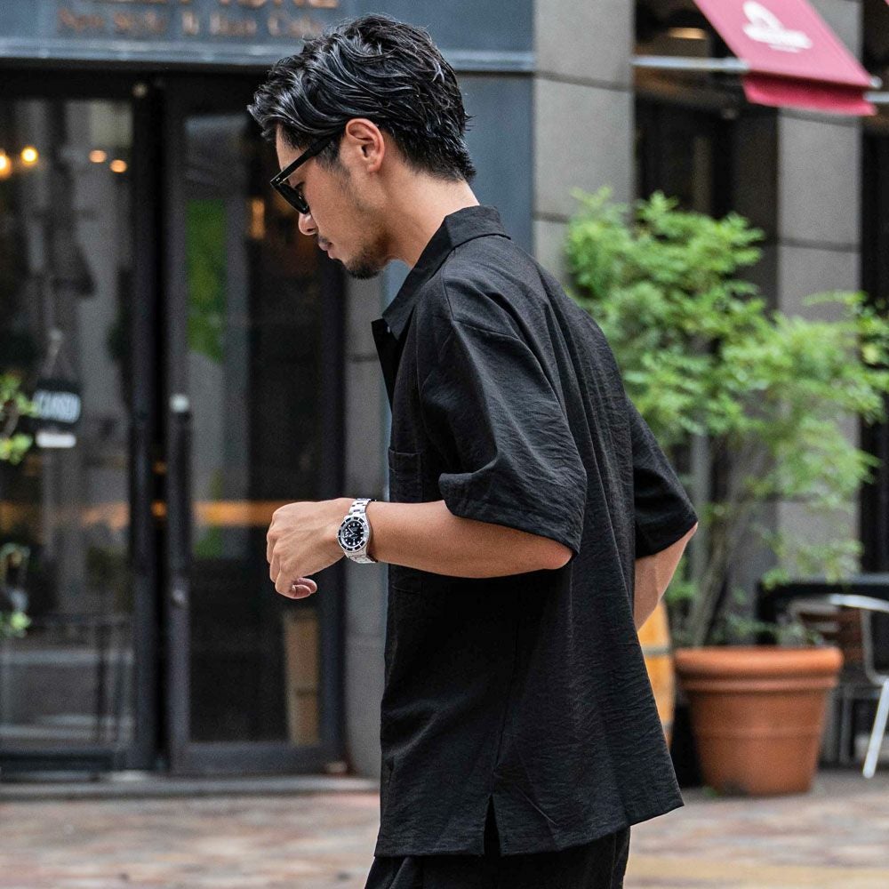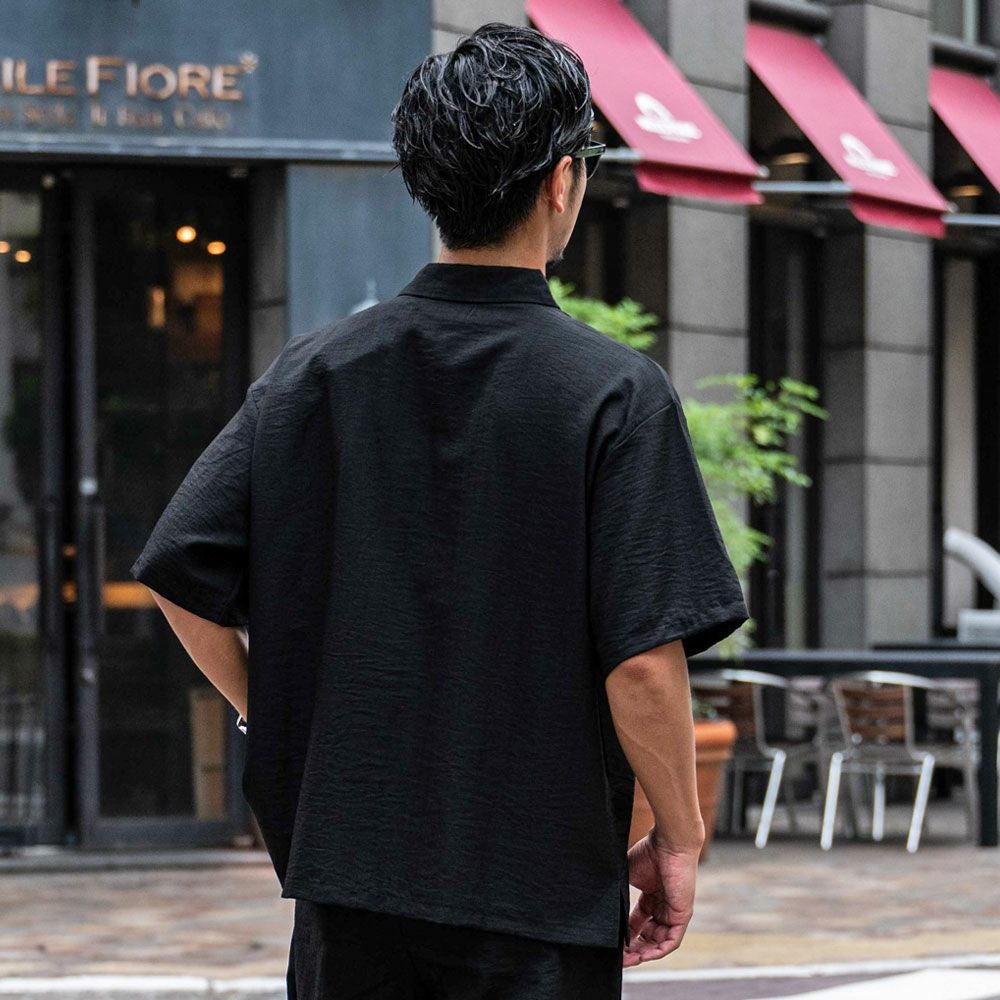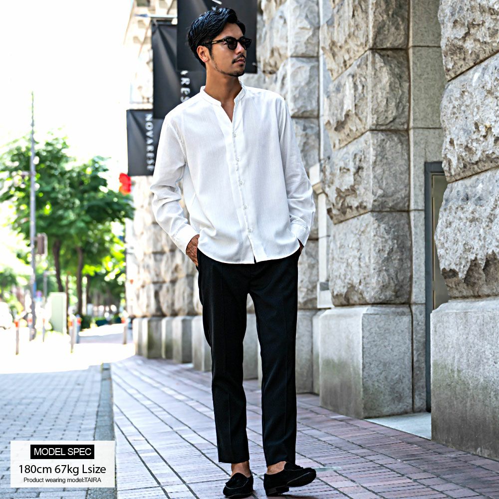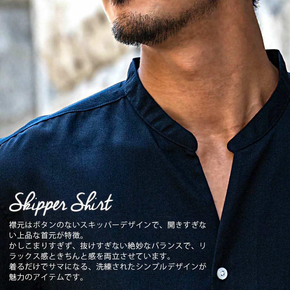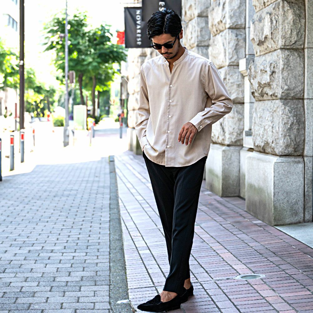 CavariA【キャバリア】日本製スキッパーバンドカラールーズ長袖シャツ/全3色
