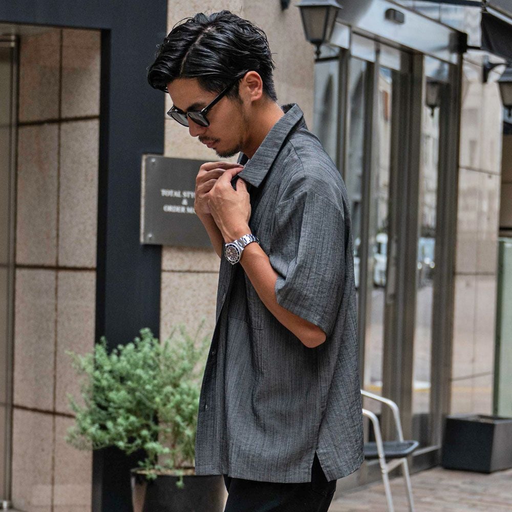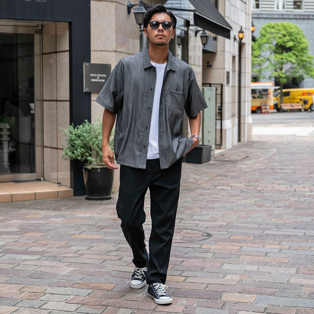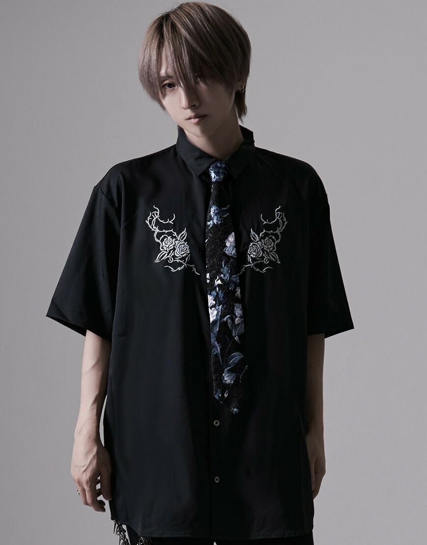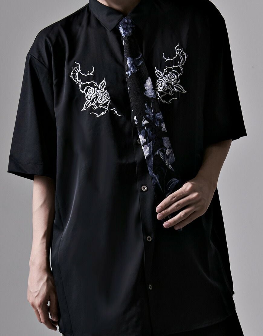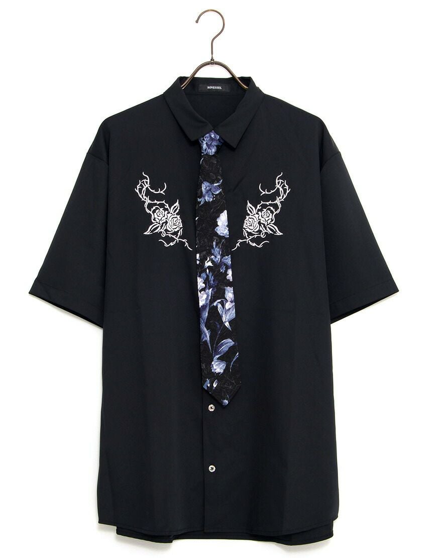NOVESSEL【ノベセル】花柄ジャカードネクタイ付き半袖シャツ/全1色