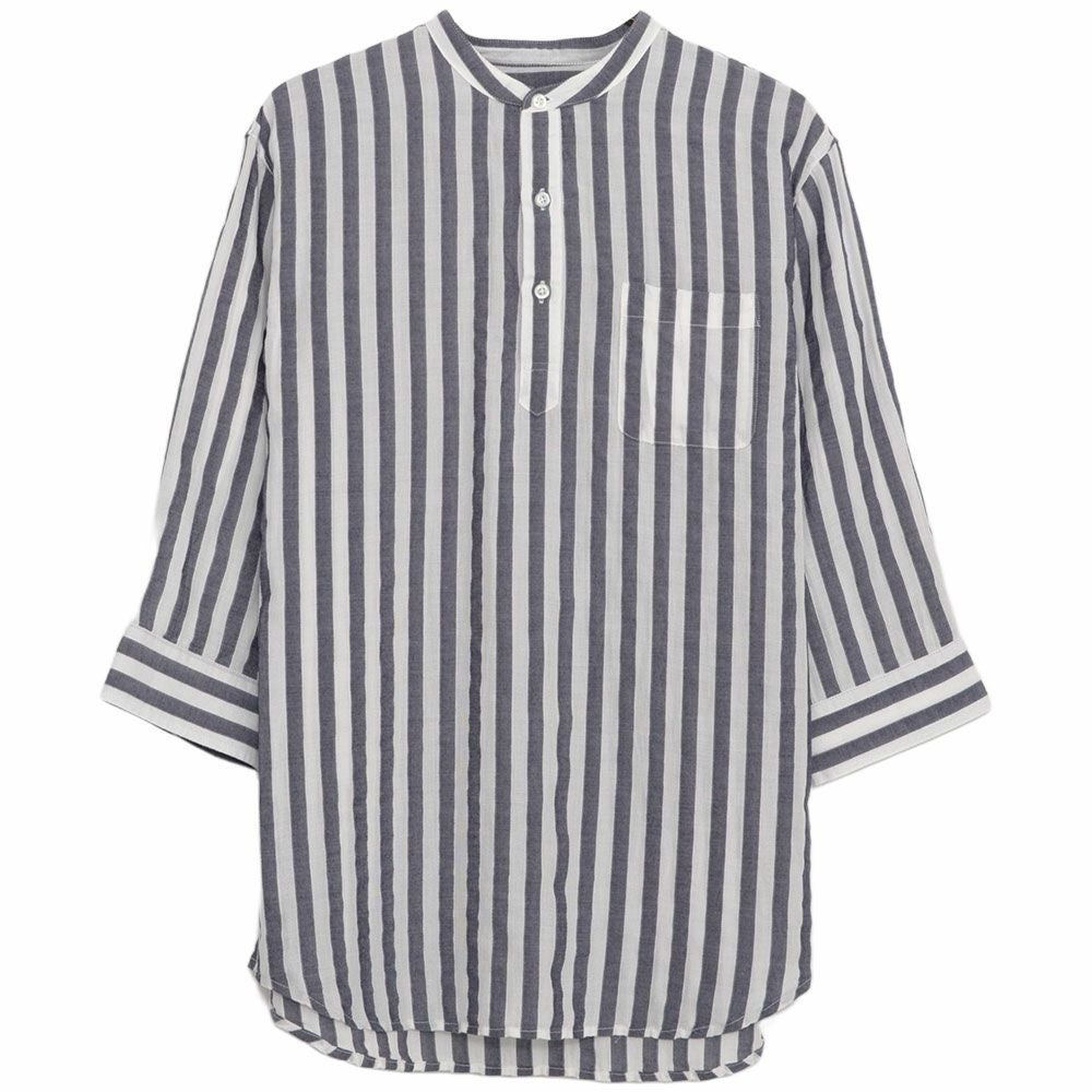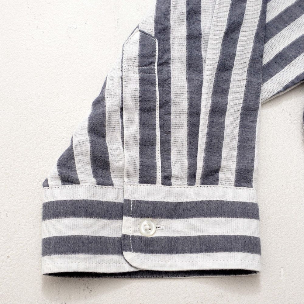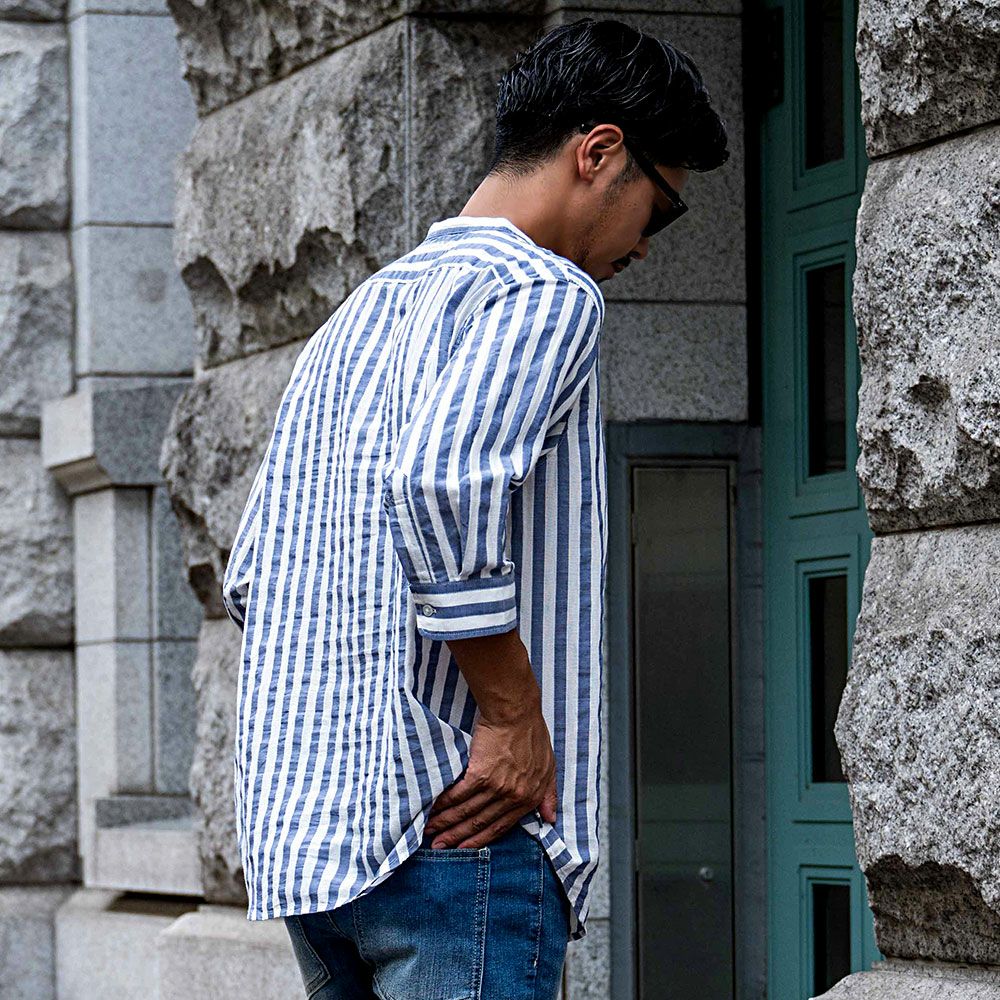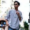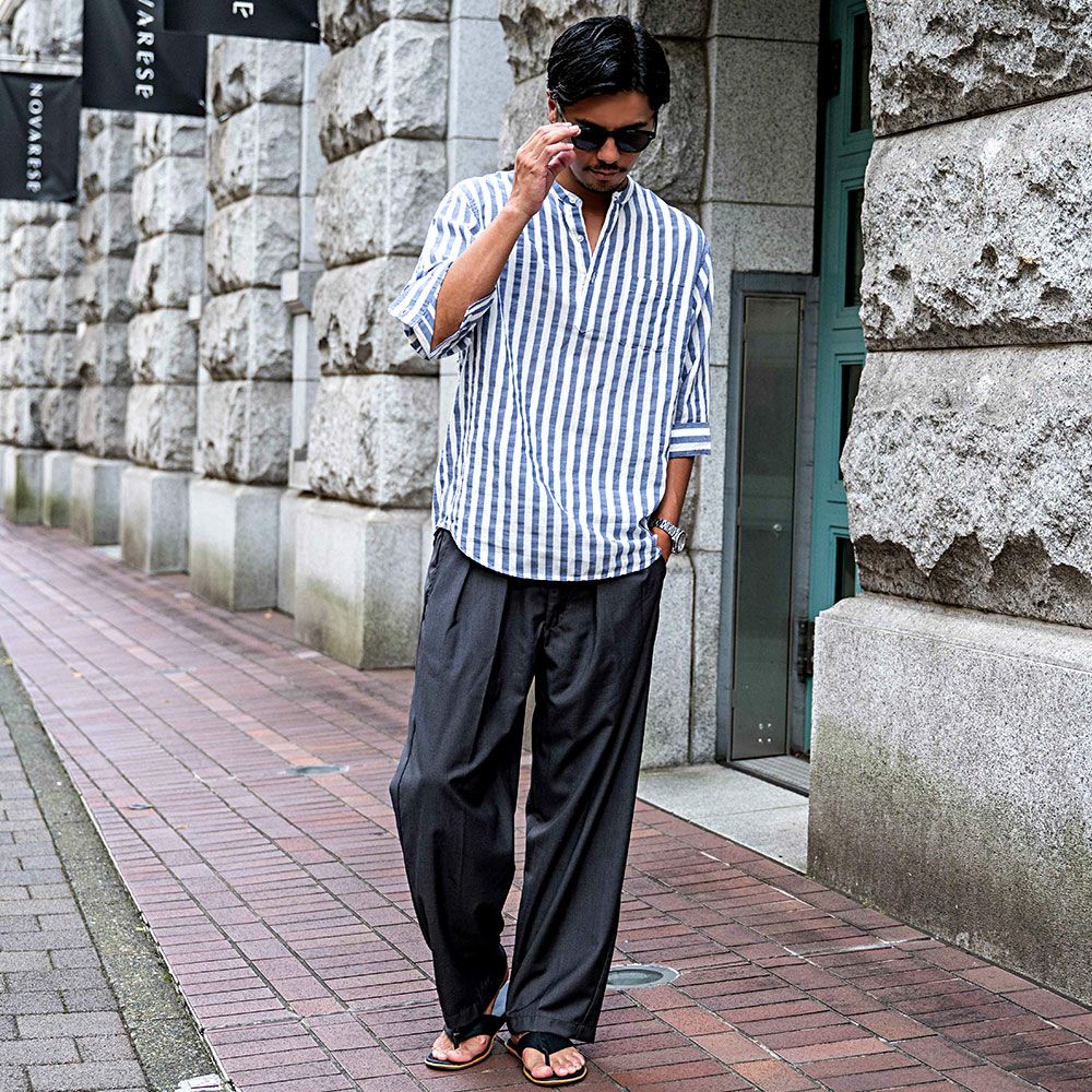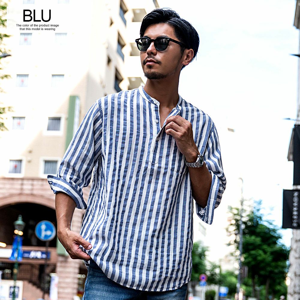 CavariA【キャバリア】パナマ織ストライプバンドカラープルオーバー7分袖シャツ/全2色