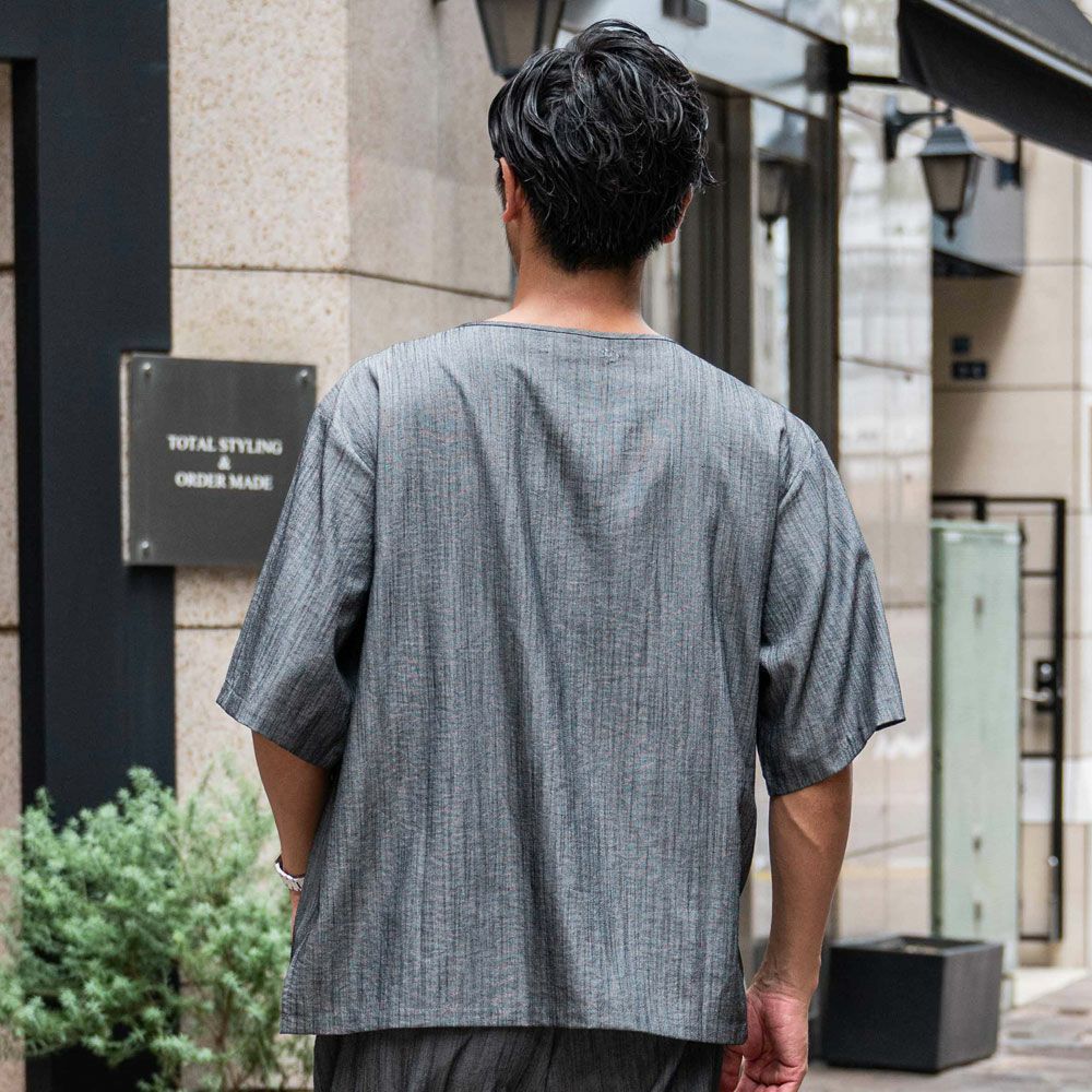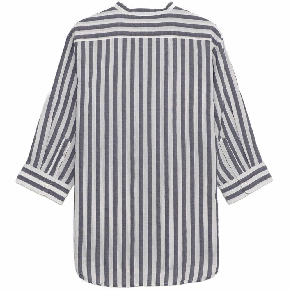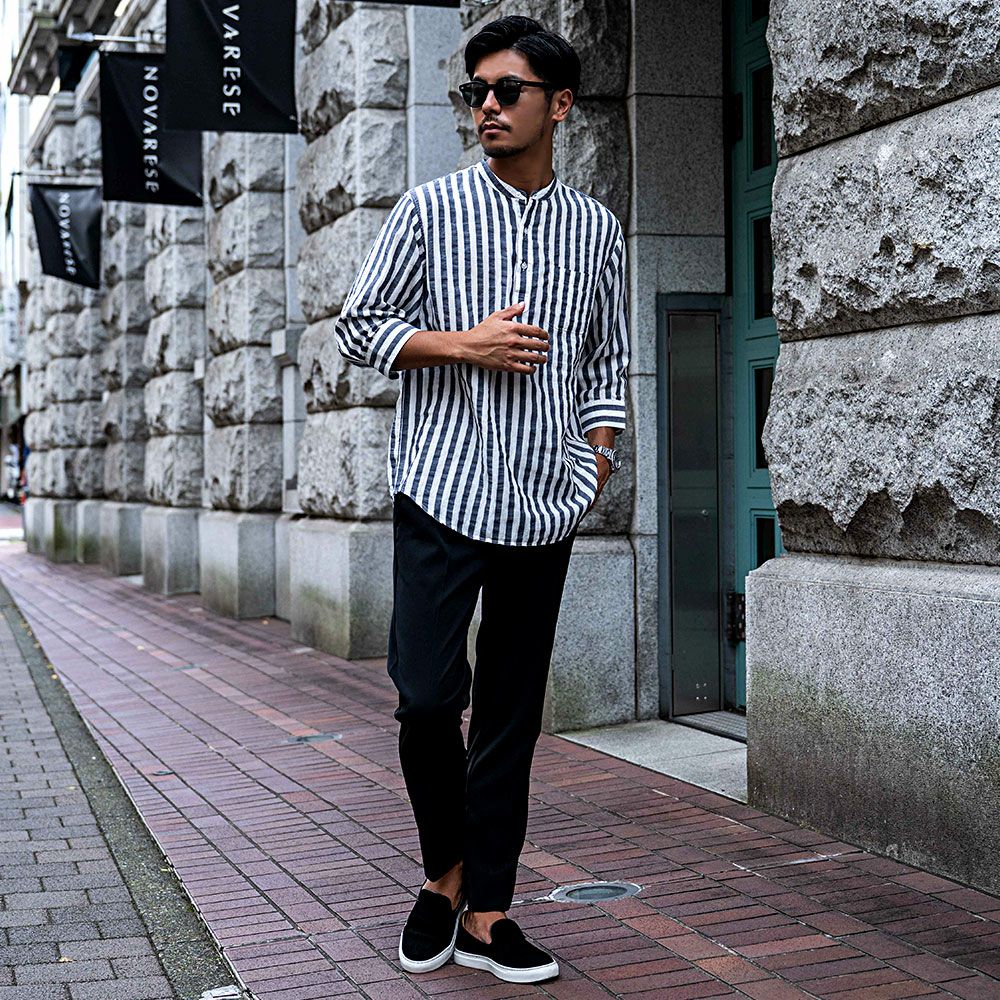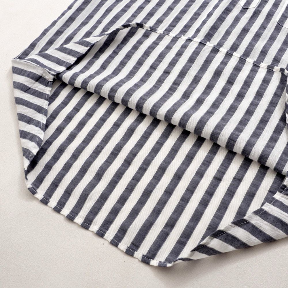 CavariA【キャバリア】パナマ織ストライプバンドカラープルオーバー7分袖シャツ/全2色