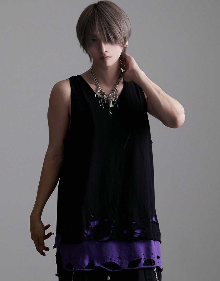 NOVESSEL【ノベセル】クラッシュ加工フェイクレイヤードタンクトップ/全4色