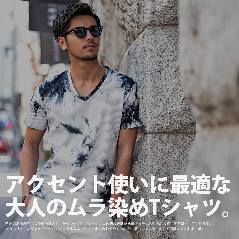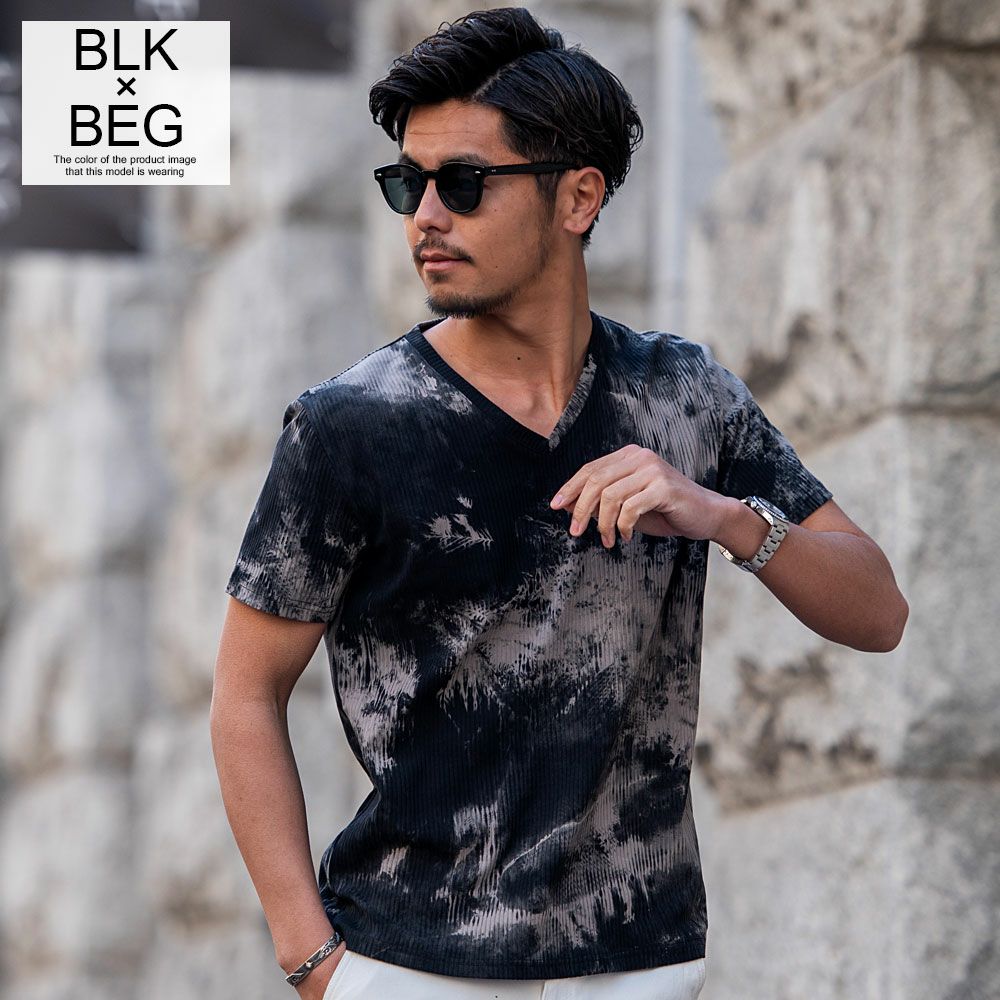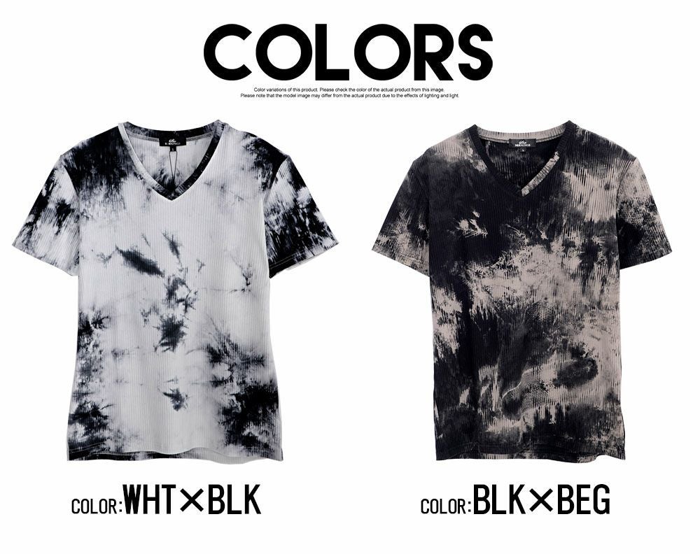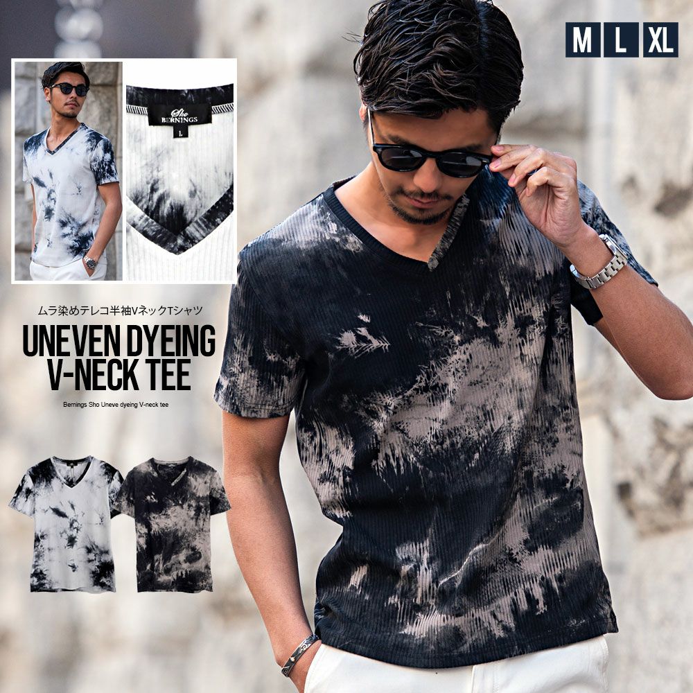 Bernings Sho【バーニングショー】ムラ染めテレコ半袖VネックTシャツ/全2色【メール便対応】