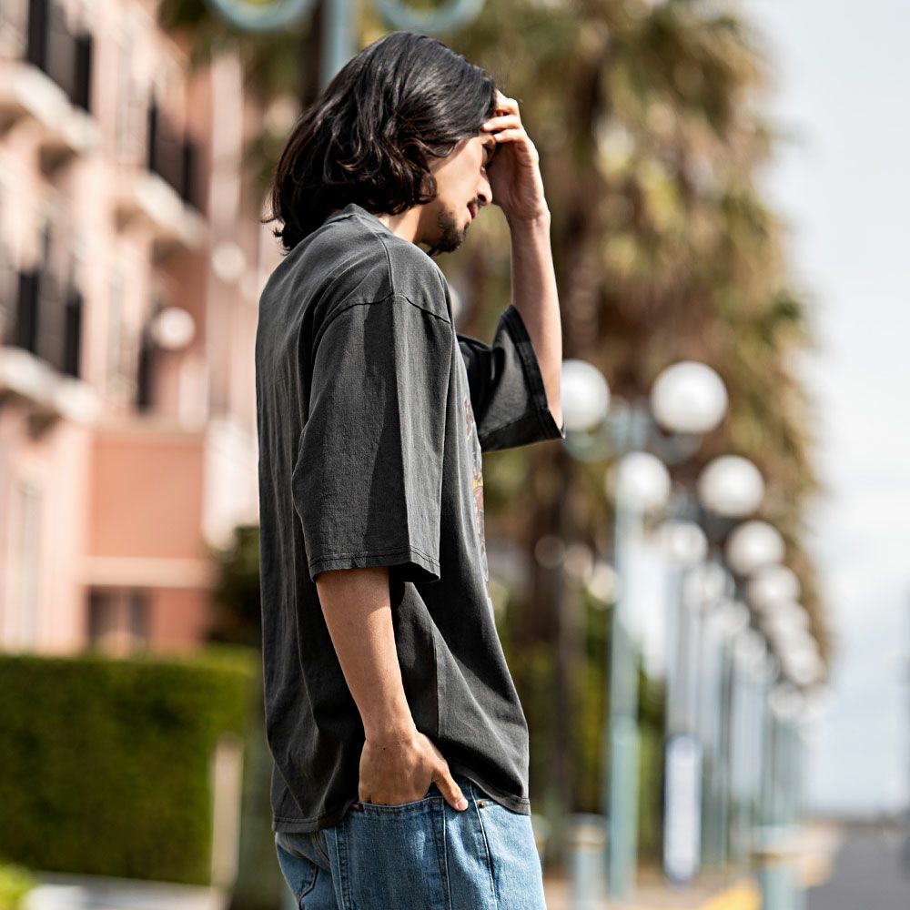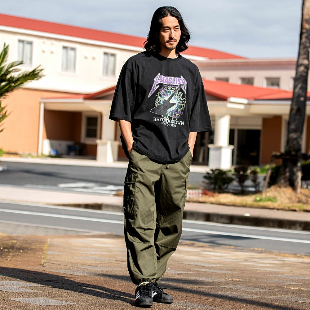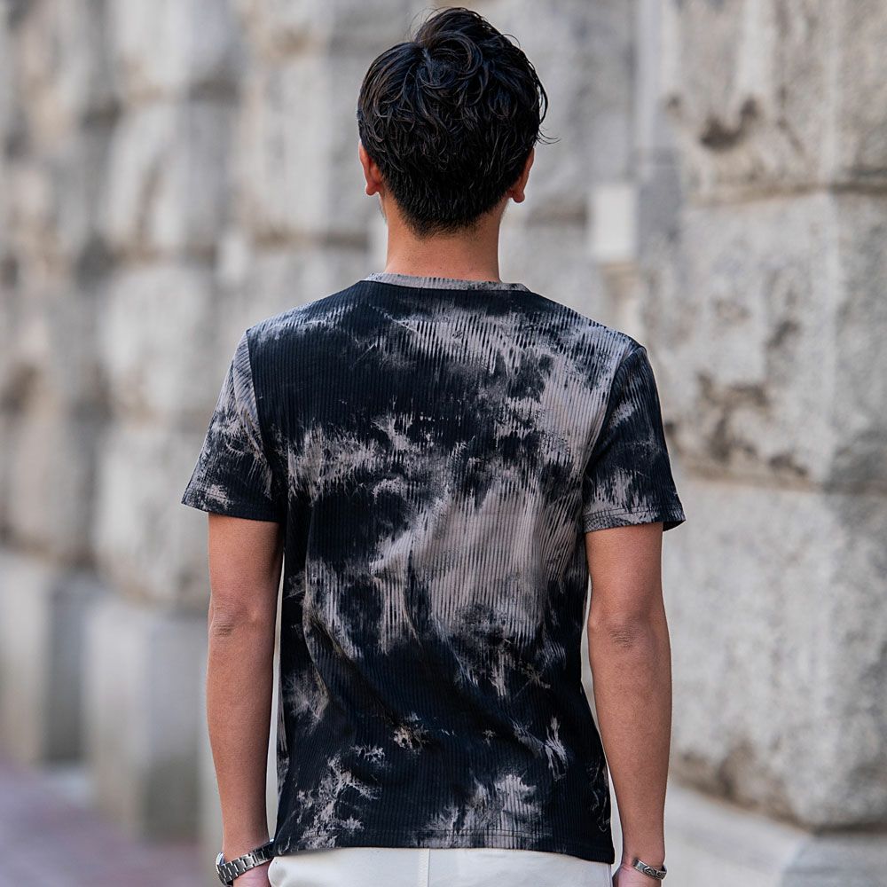 Bernings Sho【バーニングショー】ムラ染めテレコ半袖VネックTシャツ/全2色【メール便対応】