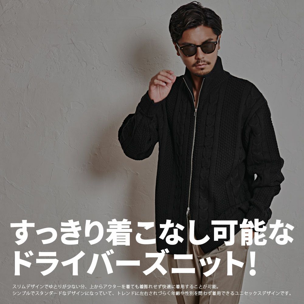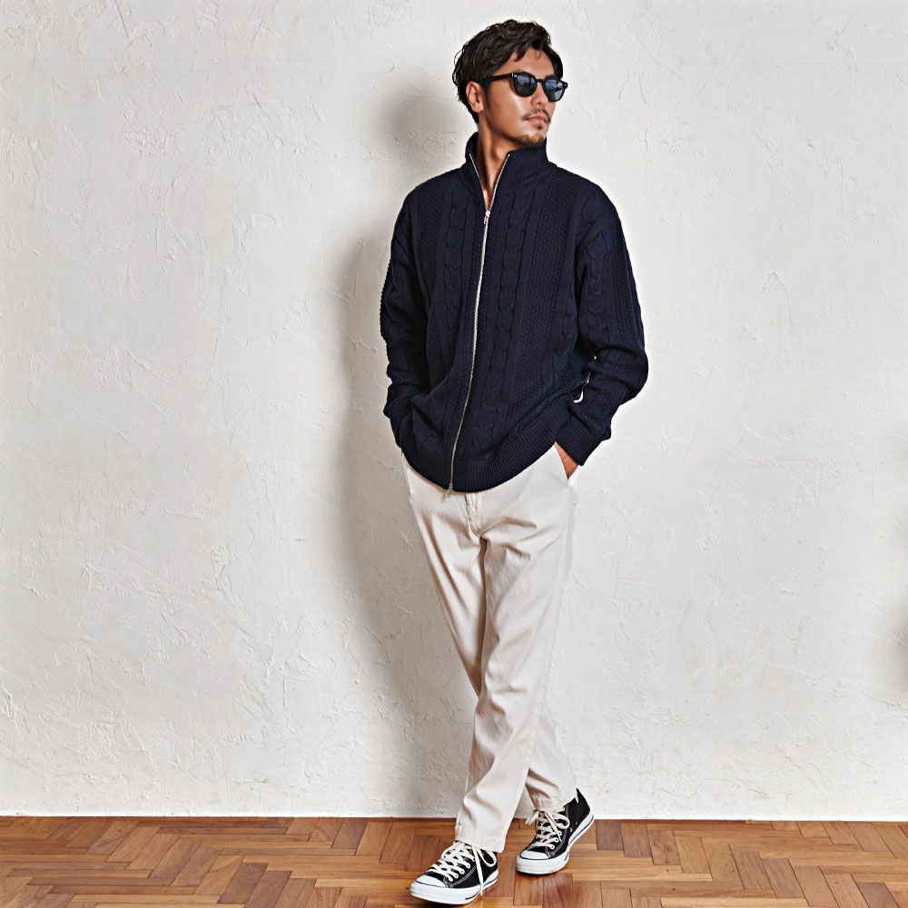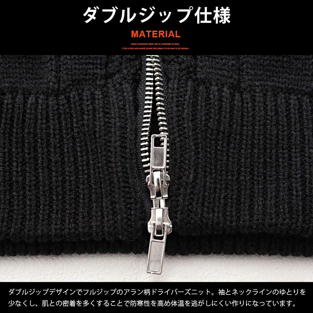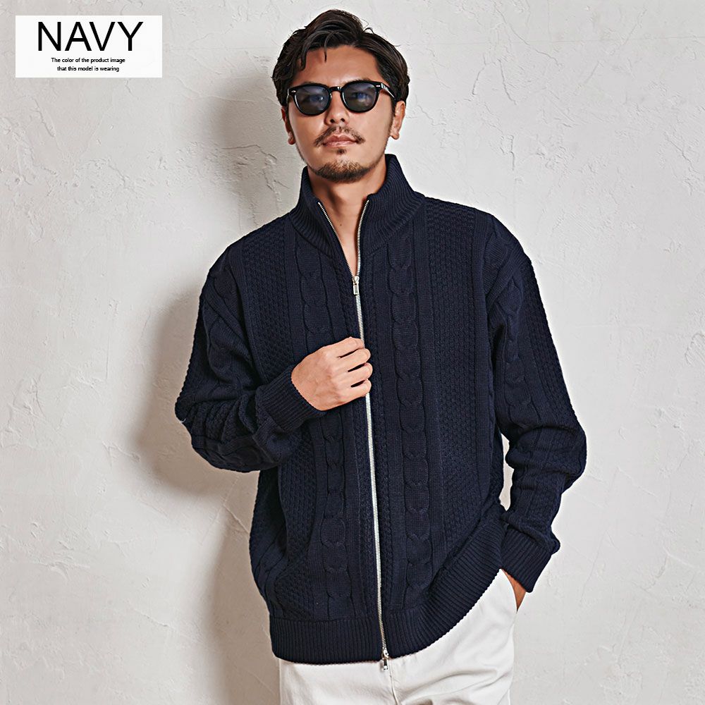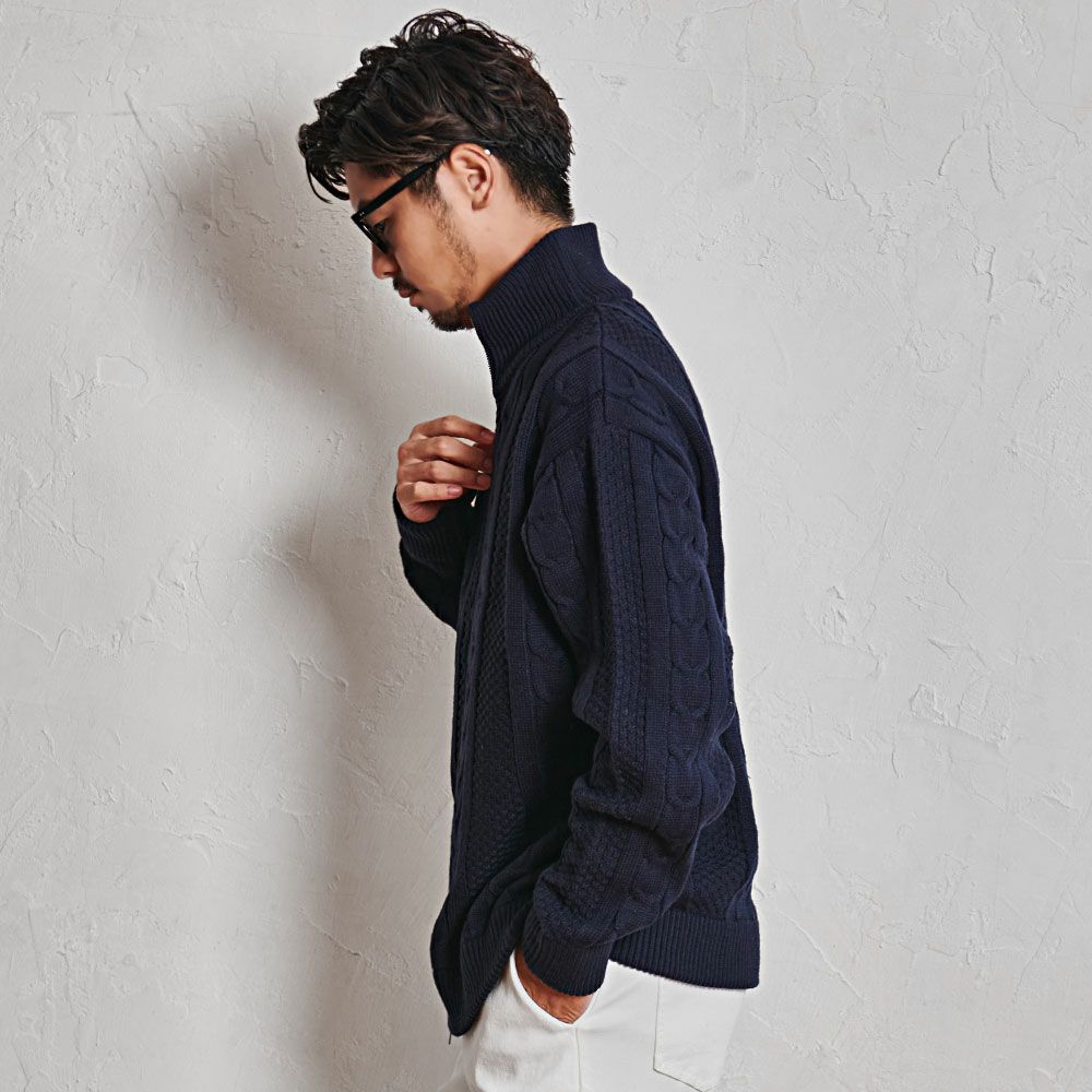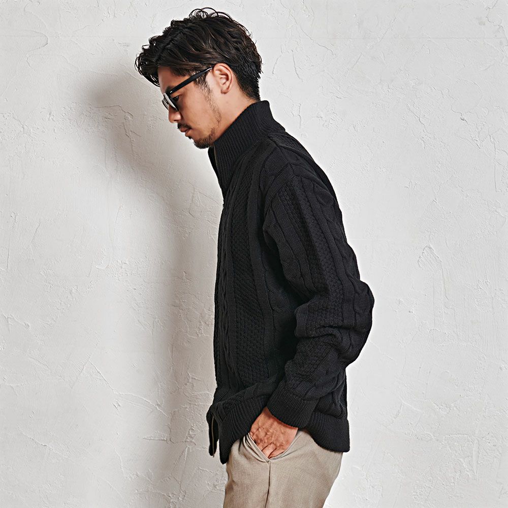 CavariA【キャバリア】アラン柄W ZIP HI 長袖ニットJKT/全3色ニット