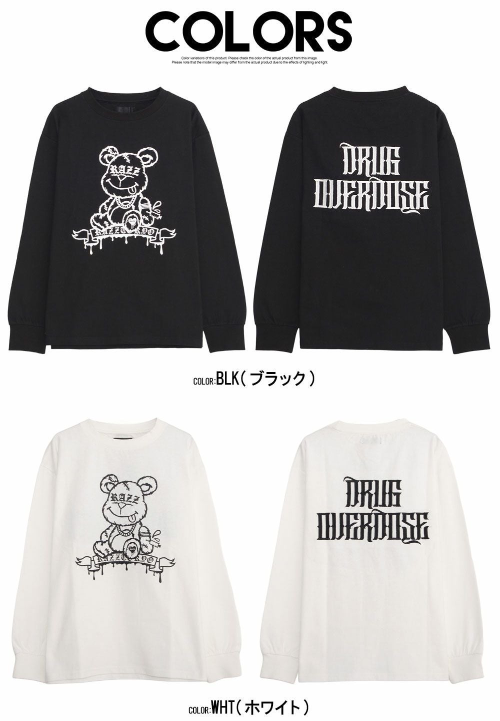 他の画像を見る RAZZIS【ラズ】DRAG OVERDOSE刺繍 ベアプリント天竺長袖Tシャツ/全2色 価格 ¥ 7,700 税込 販売期間 2025/12/13 19:00 〜 2030/12/31 23:59 カートに入れる お気に入りに登録する