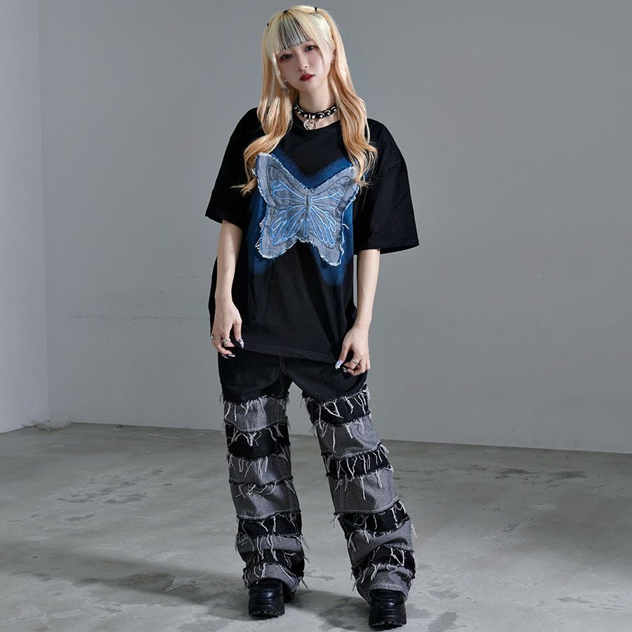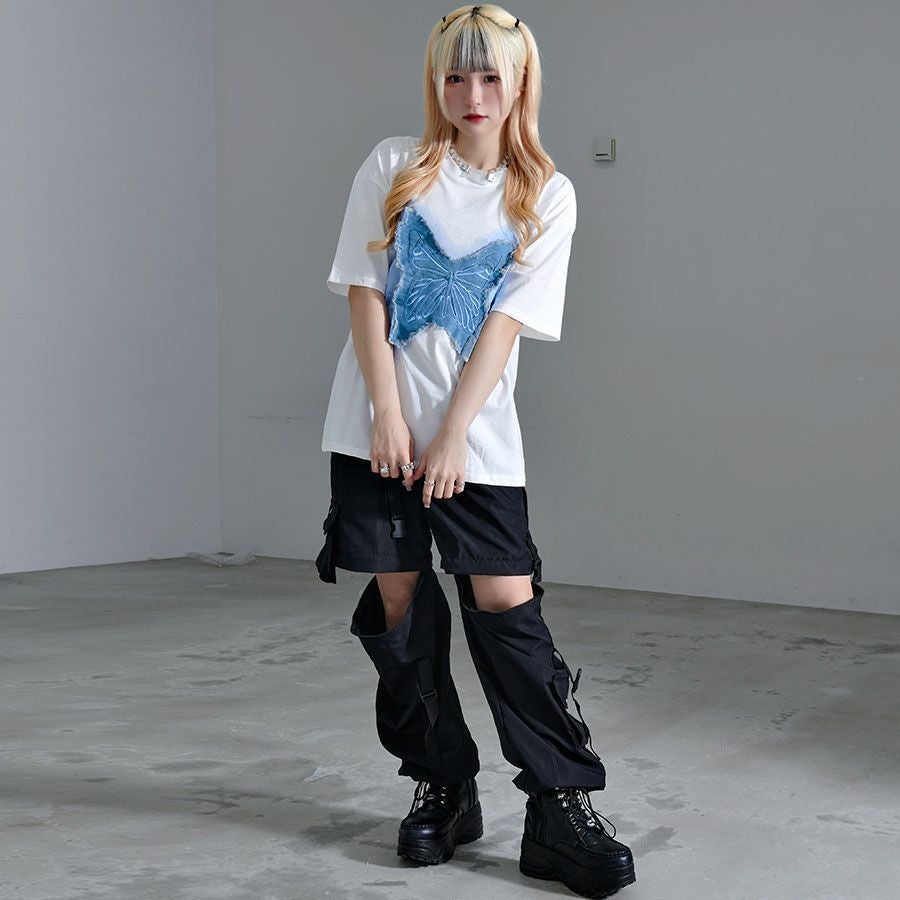 他の画像を見る izBLACK【イズブラック】フリンジデニムパッチバタフライTシャツ/全2色【メール便対応】 通常価格: ¥ 5,940 価格 ¥ 4,158 税込 カートに入れる お気に入りに登録する