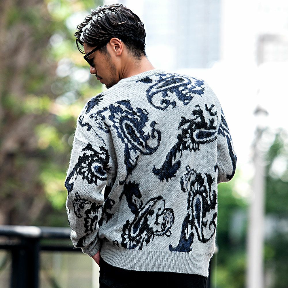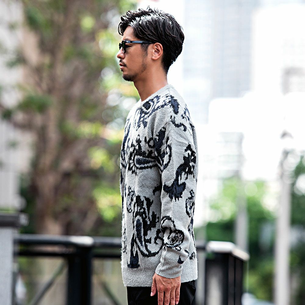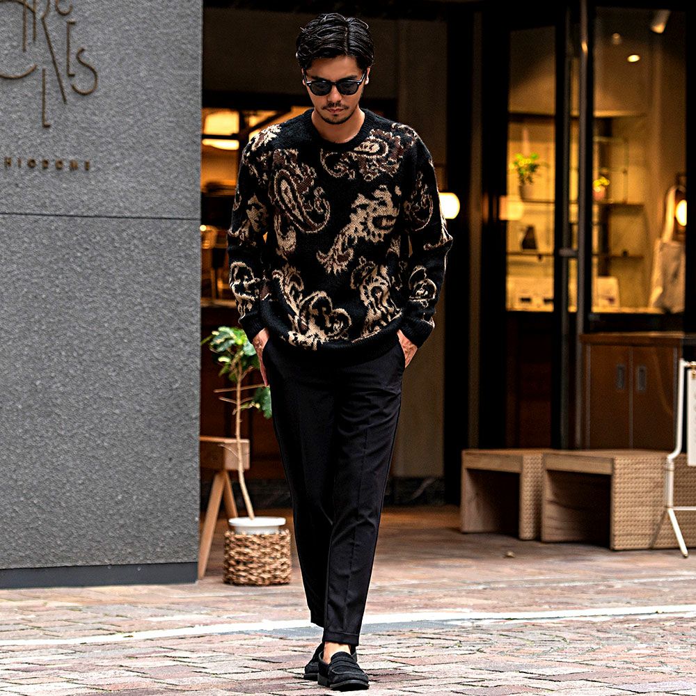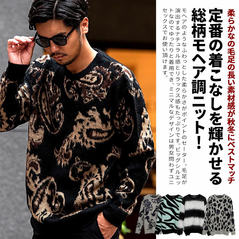 CavariA【キャバリア】モヘアタッチ総柄クルーネック/全8色