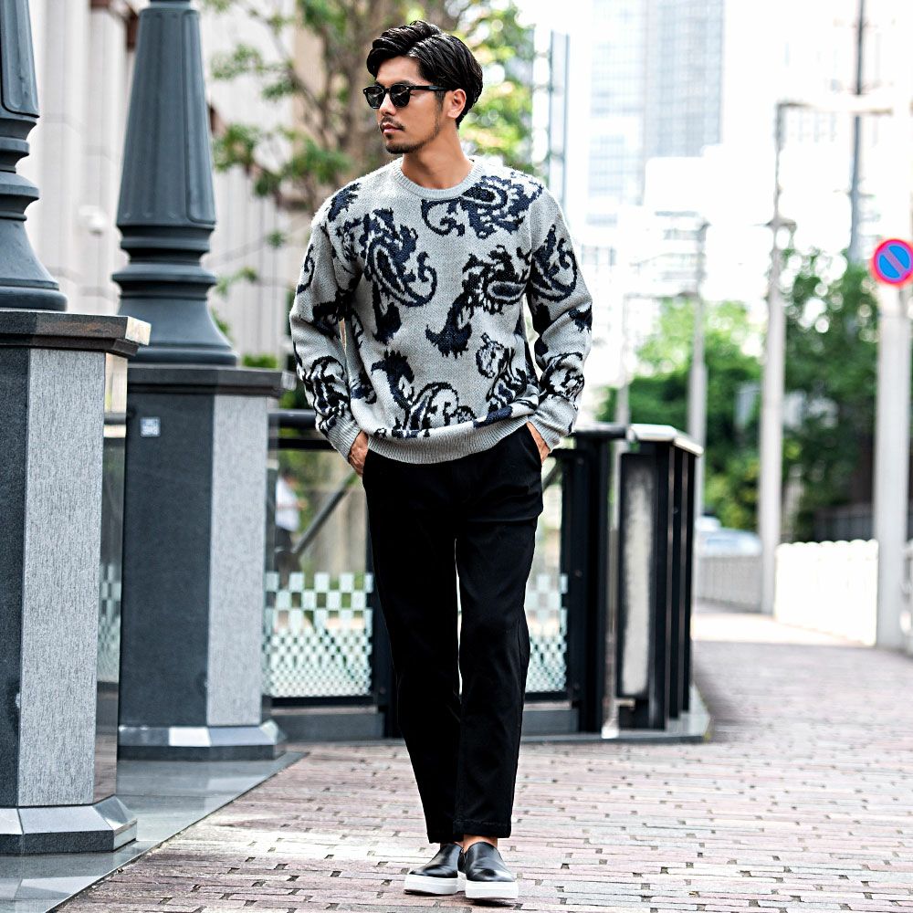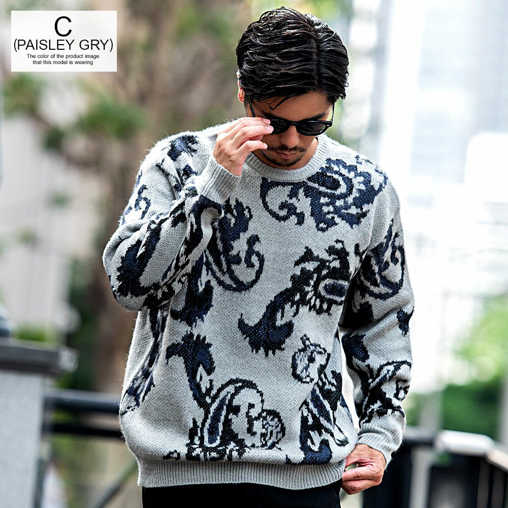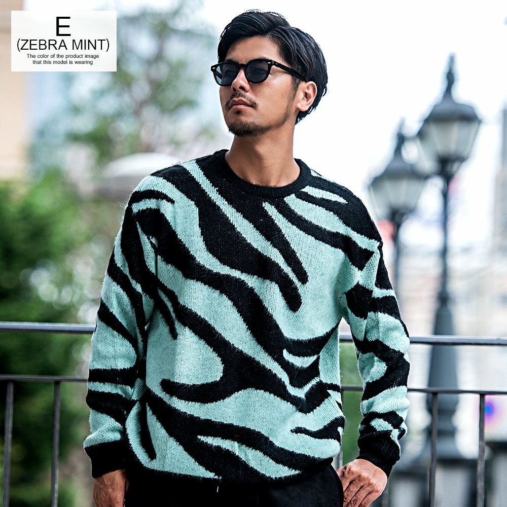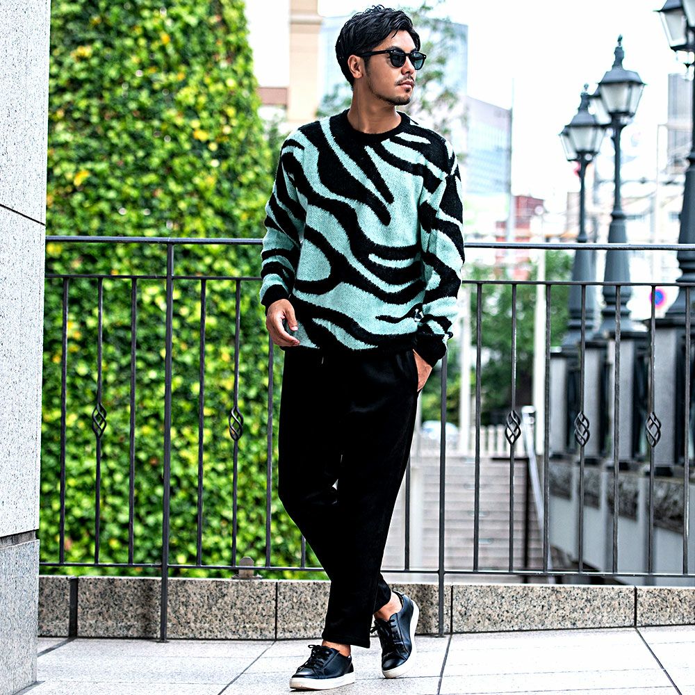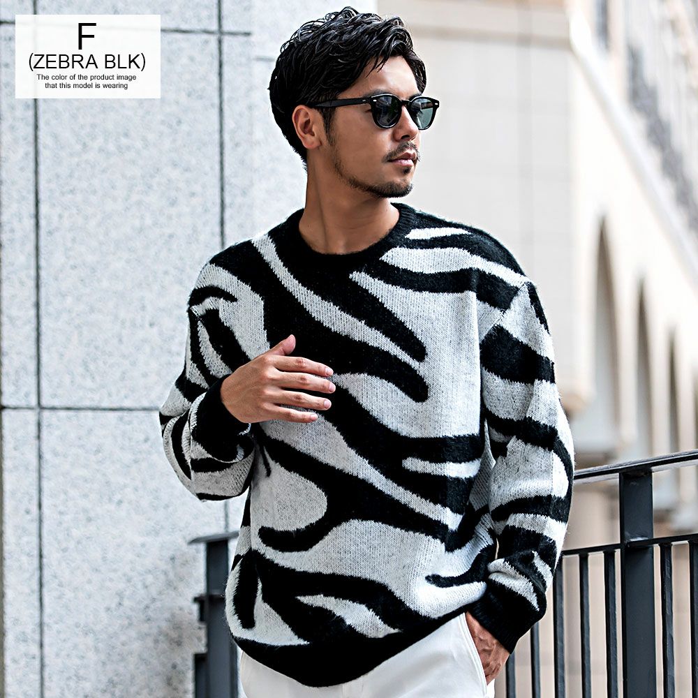 CavariA【キャバリア】モヘアタッチ総柄クルーネック/全8色