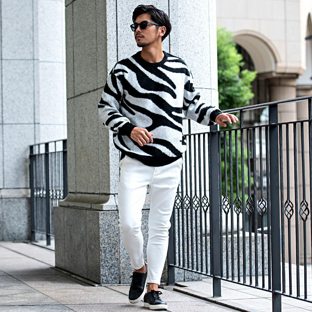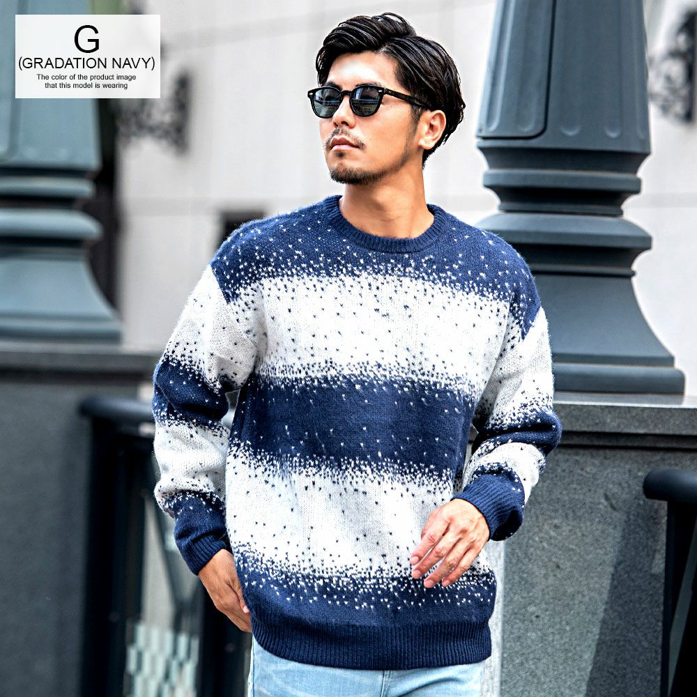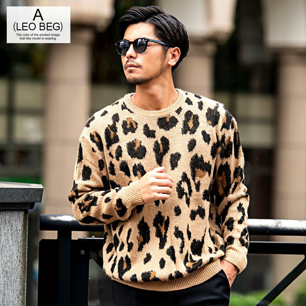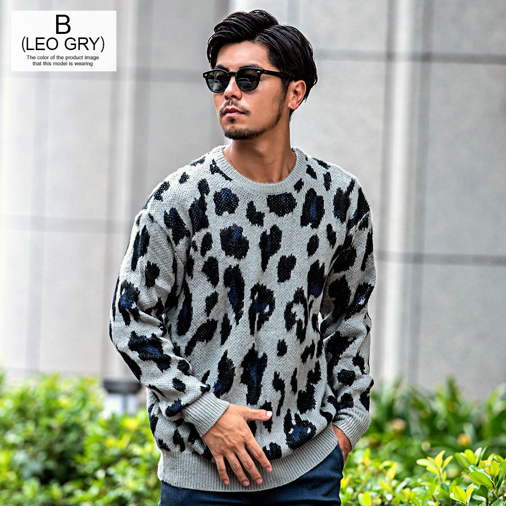 CavariA【キャバリア】モヘアタッチ総柄クルーネック/全8色