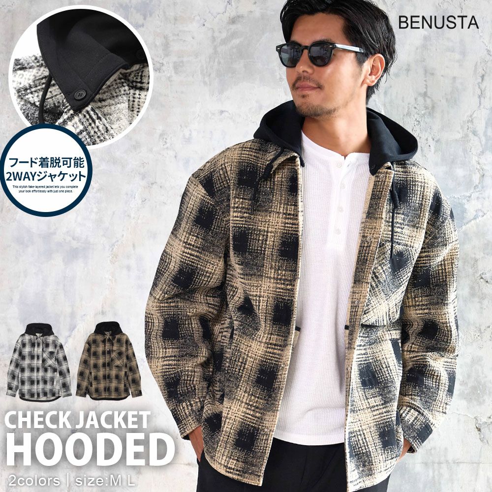 BENUSTA【ベヌスタ】フード付きチェックジャケット/全2色