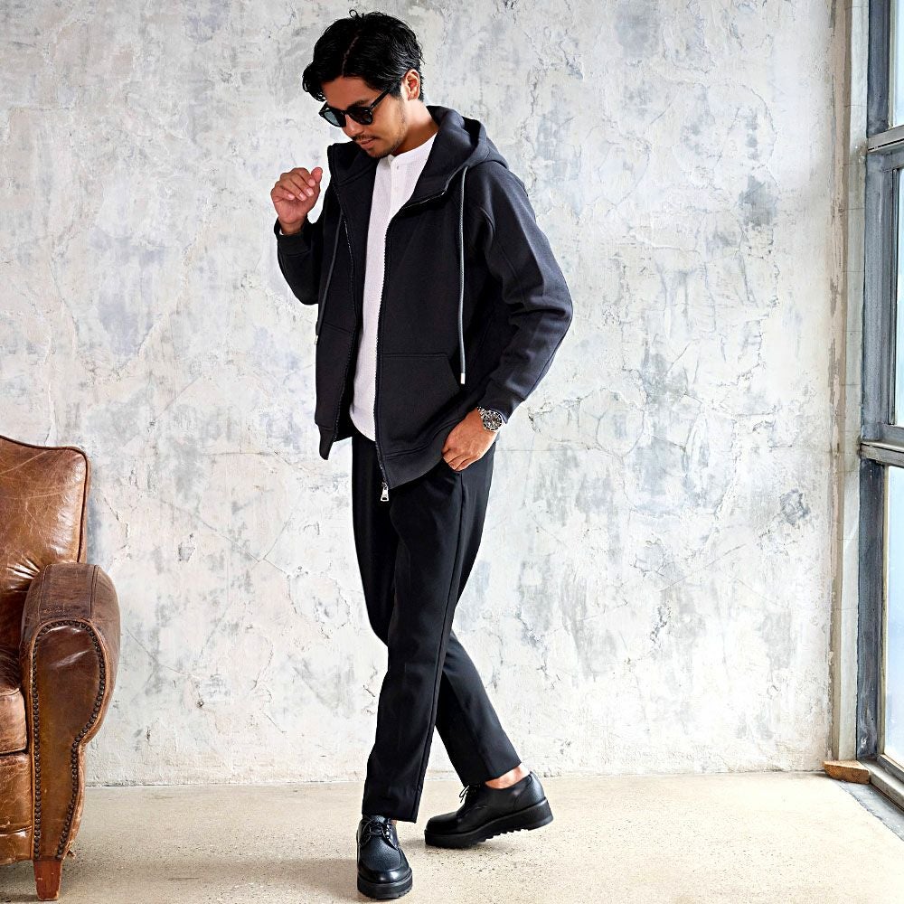 BENUSTA【ベヌスタ】袖リブ切り替えジップアップパーカー/全3色パーカー