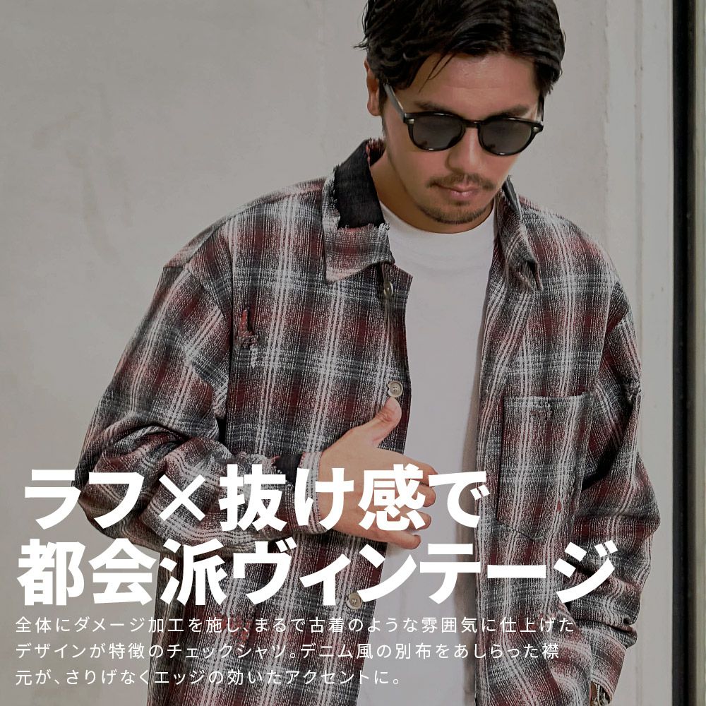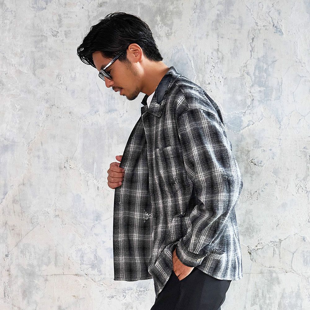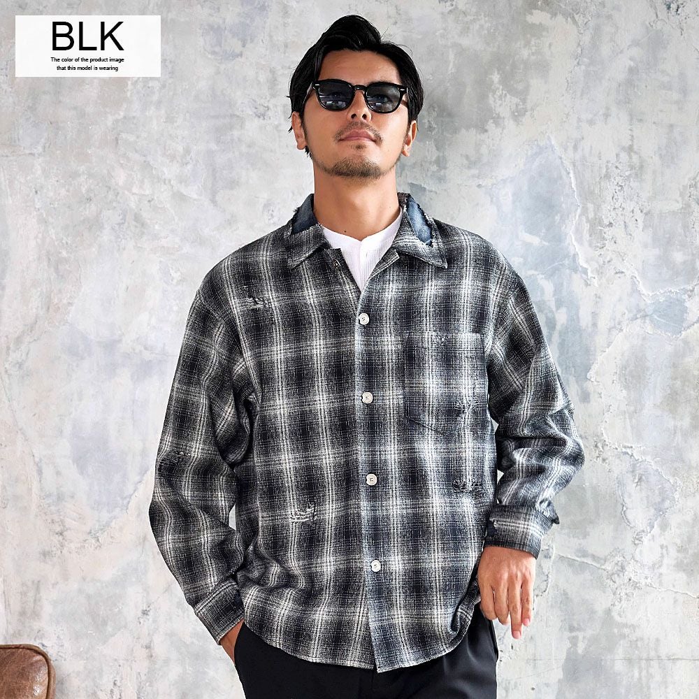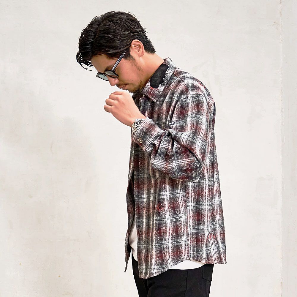 SB Select【シルバーバレットセレクト】襟ダメージチェックシャツ/全2色