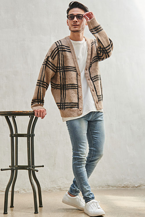 【SALE】CavariA【キャバリア】総柄モヘアタッチジャガードビッグカーディガン/全10色