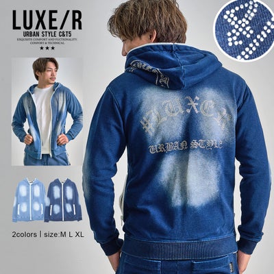 LUXE/R【ラグジュ】ラインストーンロゴカットデニムジップパーカー/全2色パーカーのレビューを書く