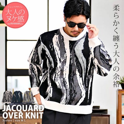 CavariA【キャバリア】ジャガードマーブルクルーネック柄長袖ニットセーター/全3色ニットのレビューを書く