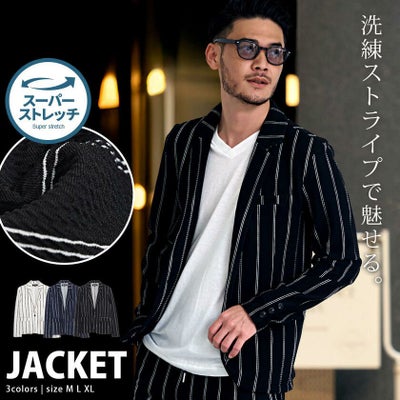 CavariA【キャバリア】ストライプ柄長袖ストレッチテーラードジャケット/全3色のレビューを書く