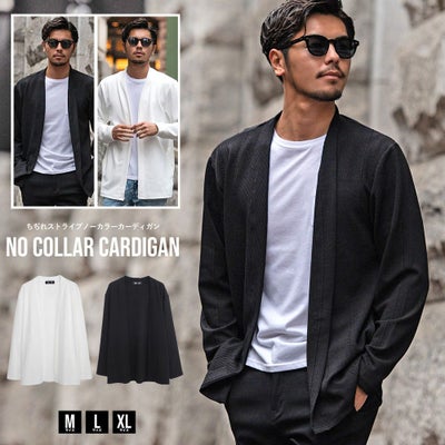 CavariA【キャバリア】ちぢれストライプノーカラー長袖カーディガン/全2色のレビューを書く