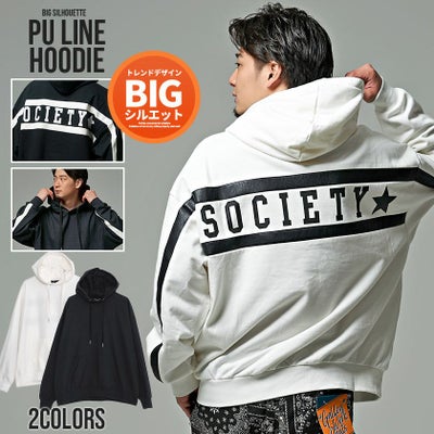 【SALE】CavariA【キャバリア】PUレザーライン入り長袖プルオーバービッグパーカー/全2色パーカーのレビューを書く