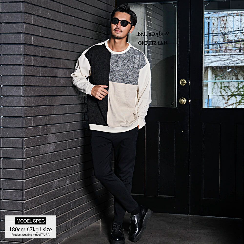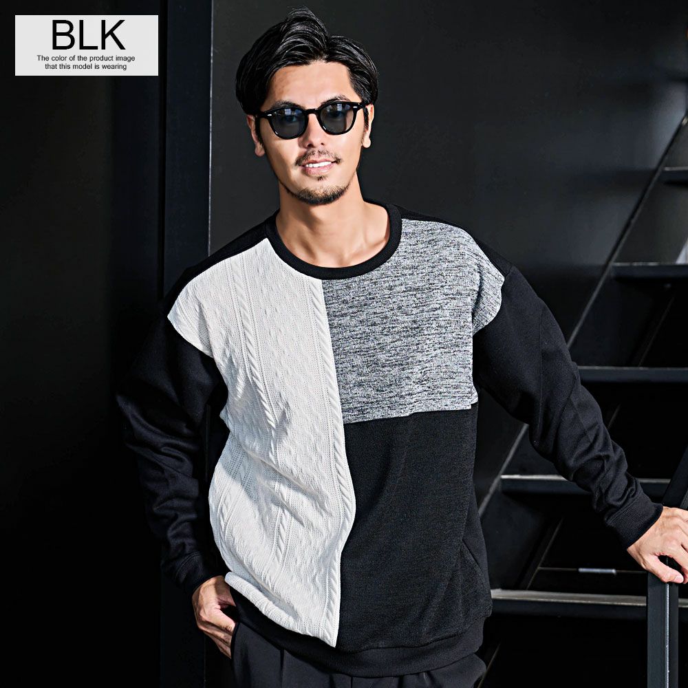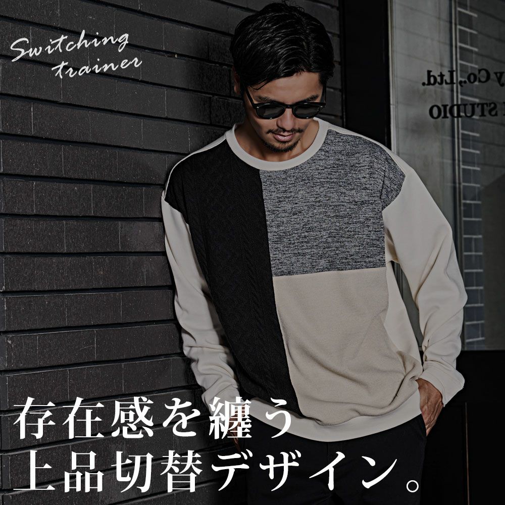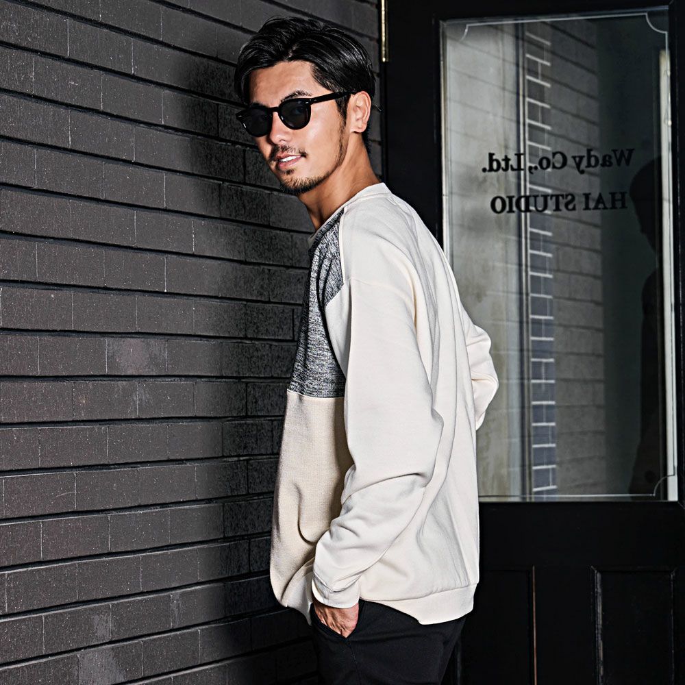 CavariA【キャバリア】裏起毛異素材切替スウェット/全2色トレーナー