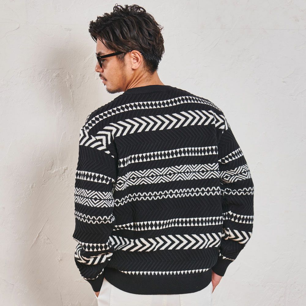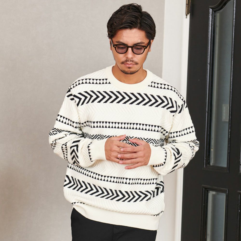 CavariA【キャバリア】クルーネック 幾何学柄ニット/全3色ニット