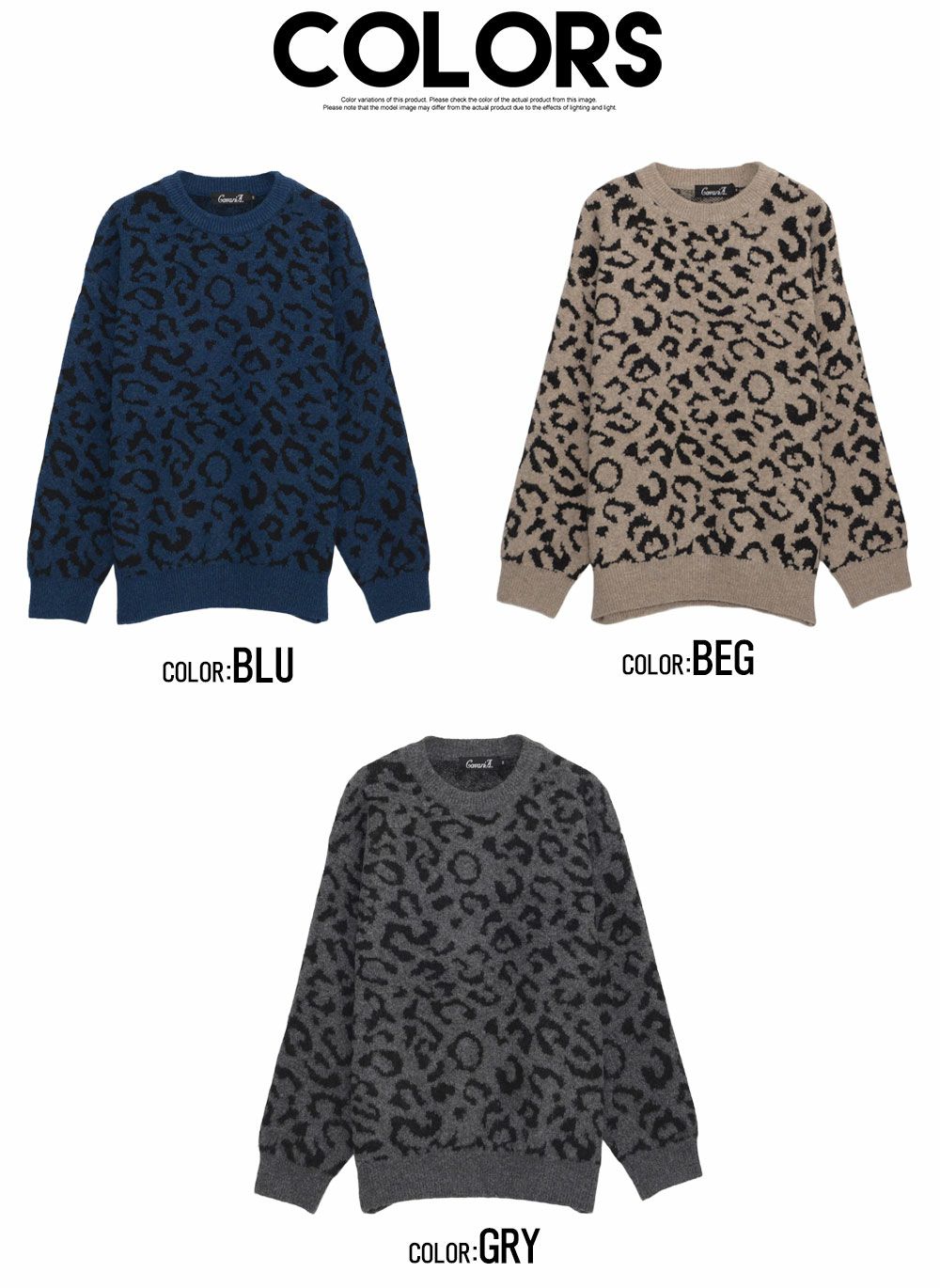 CavariA【キャバリア】ヒョウ柄ニットクルーネック/全3色ニット