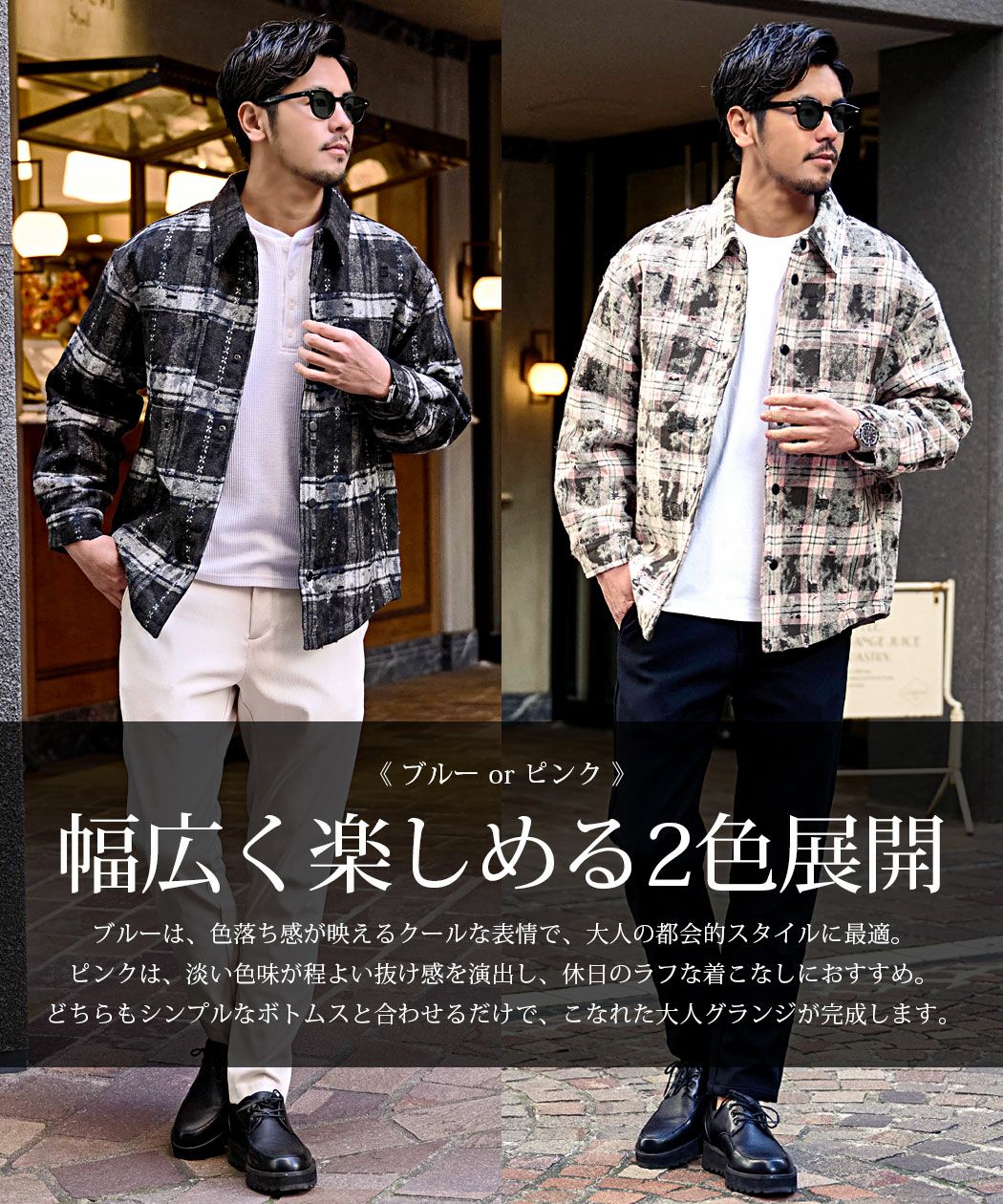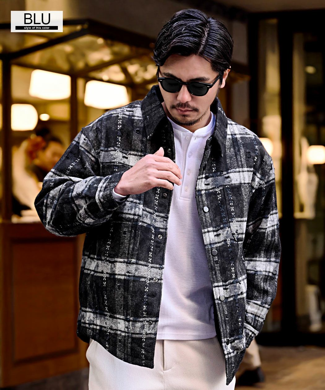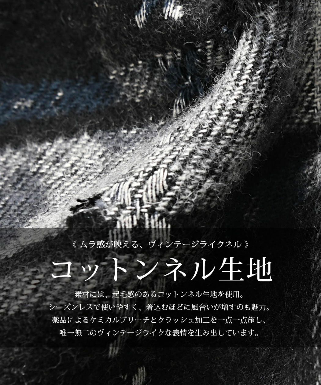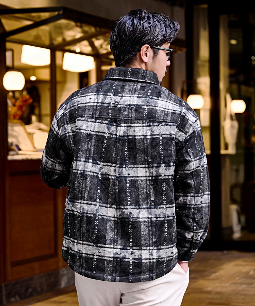 BENUSTA【ベヌスタ】ケミカルブリーチ ダメージチェックシャツジャケット/全2色