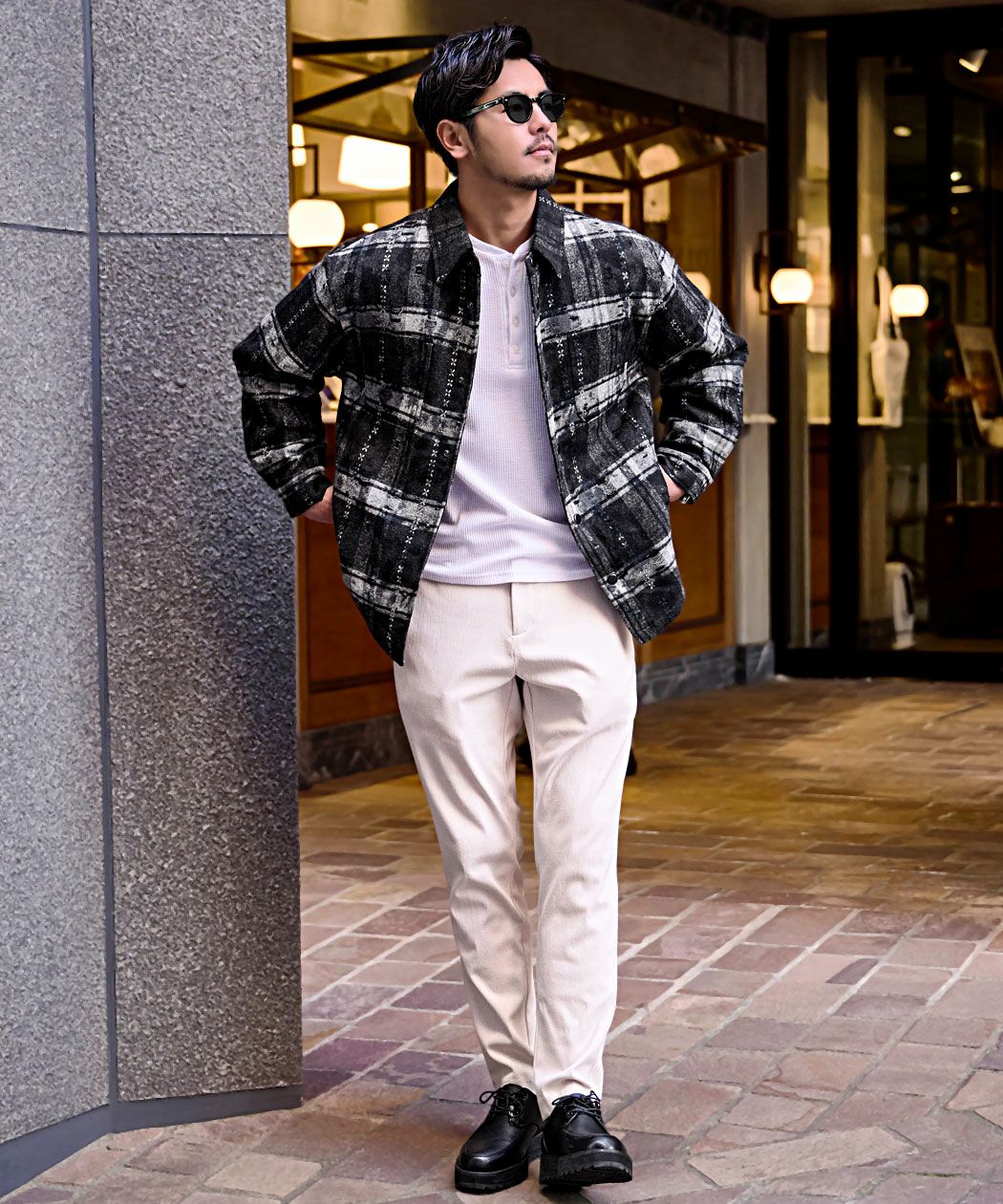 A'gem【エージェム】PUレザー襟オンブレチェックジャケット/全2色