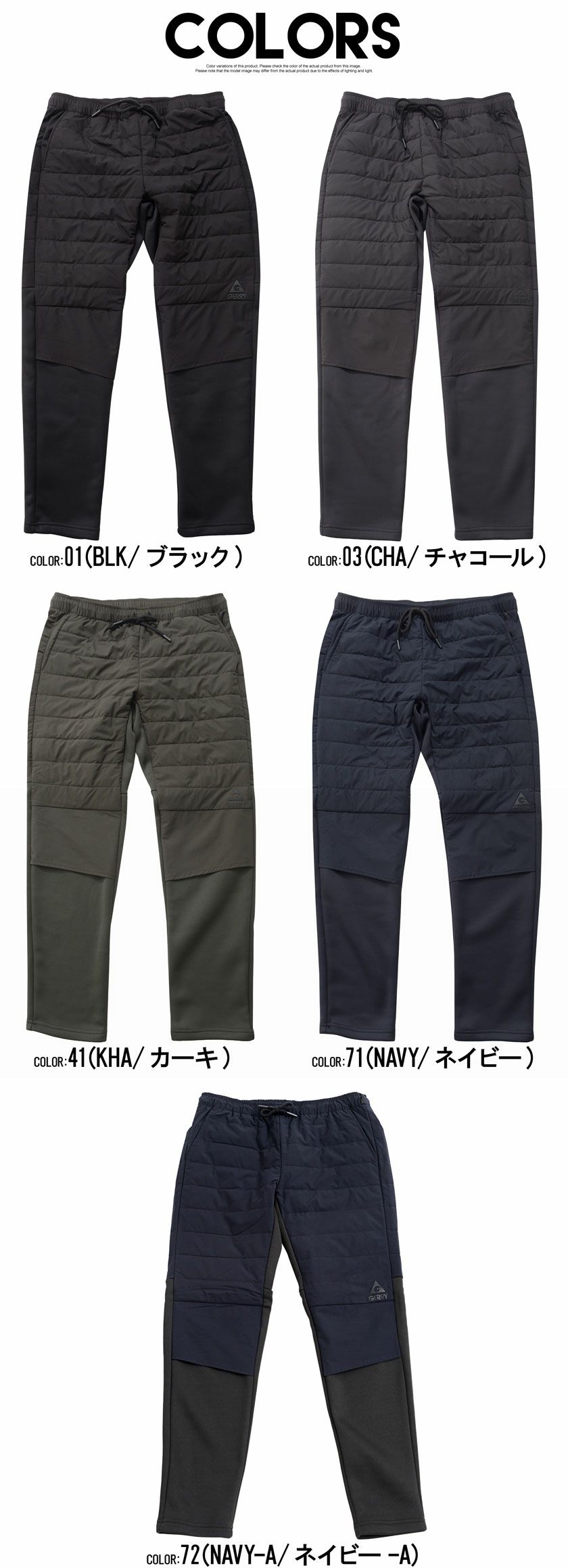 GERRY【ジェリー】ポリリップ中綿トラックパンツ/全4色暖パン
