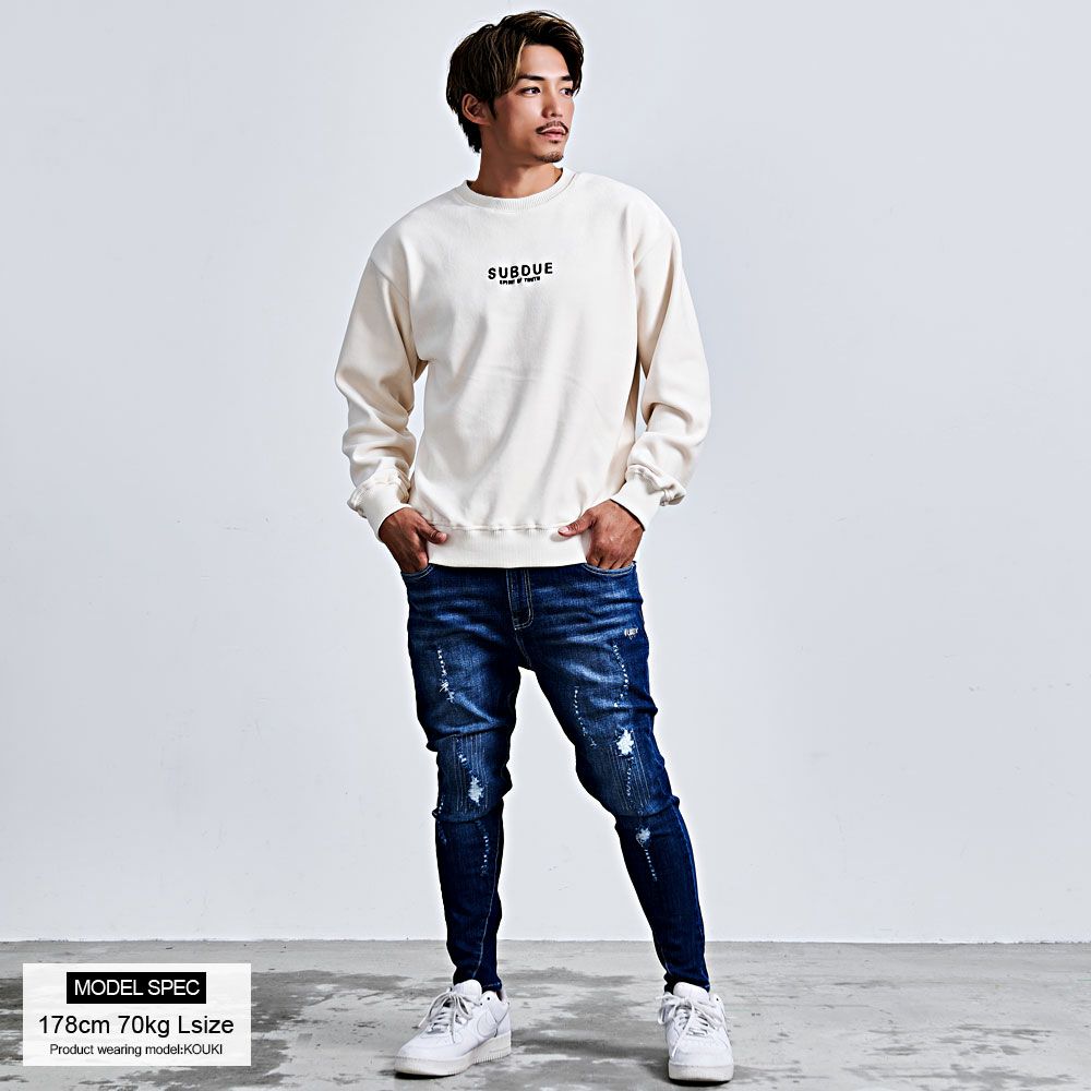 CavariA【キャバリア】ピグメント加工デニムアップリケ刺繍スウェット/全3色トレーナー