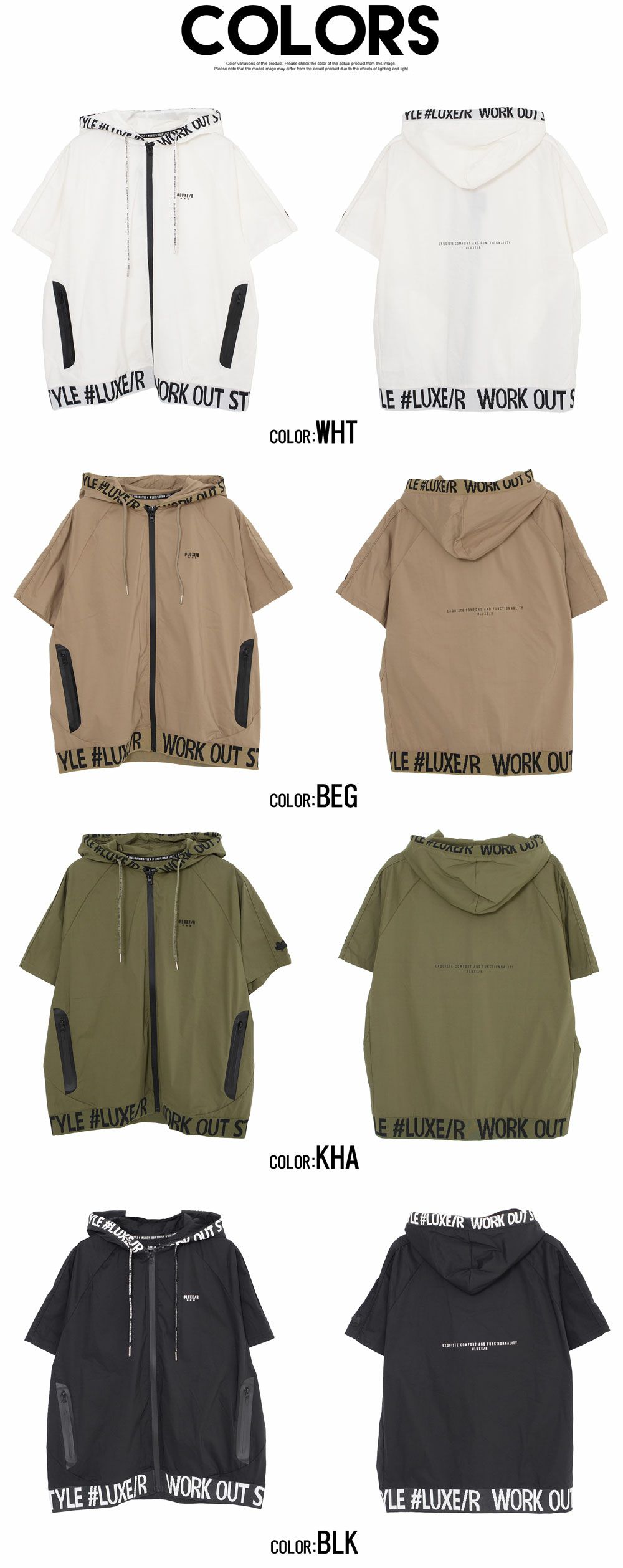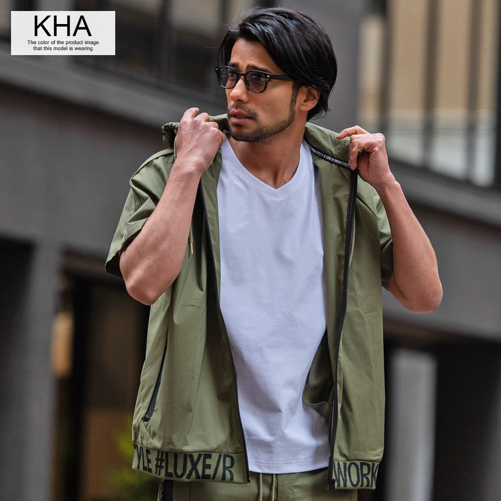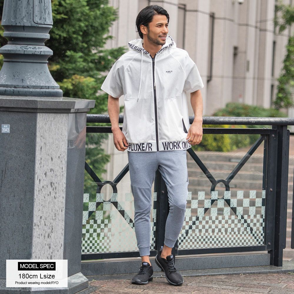 LUXE/R【ラグジュ】ストレッチ布帛半袖ZIPパーカー/全4色パーカー