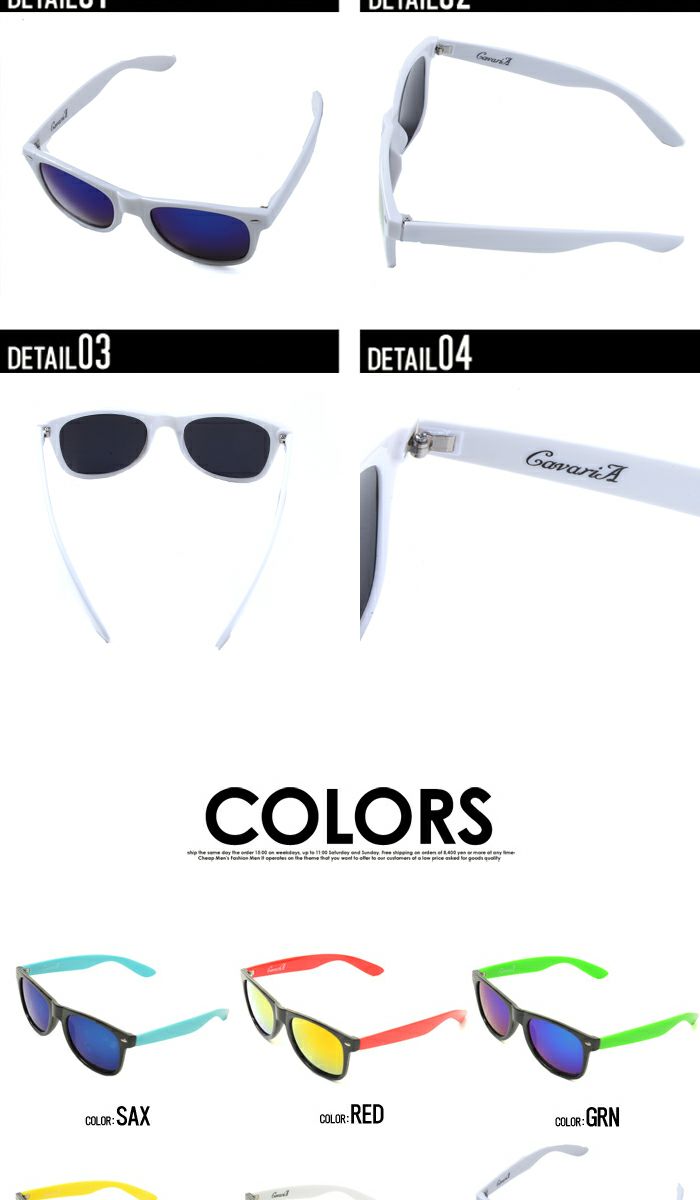 他の画像を見る 【SALE】CavariA【キャバリア】サングラスTYPE G/全5色[ホワイト/レッド/グリーン/サックス/イエロー]【再入荷】 通常価格: ¥ 3,080 価格 ¥ 3,080 税込 CavariA カートに入れる お気に入りに登録する
