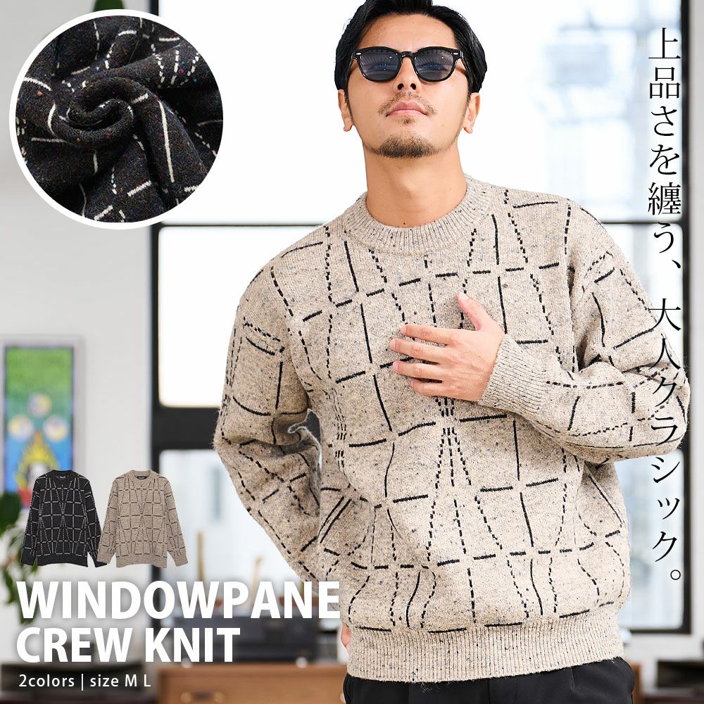 CavariA【キャバリア】変形ウインドペン柄ニットクルーネック/全2色ニット