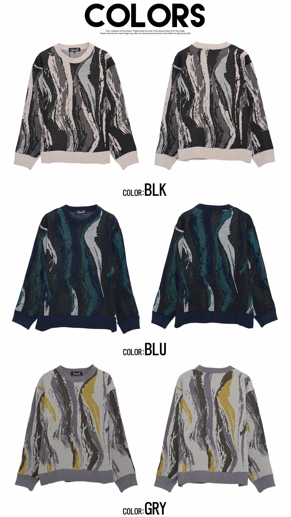 CavariA【キャバリア】ジャガードマーブルクルーネック柄長袖ニットセーター/全3色ニット